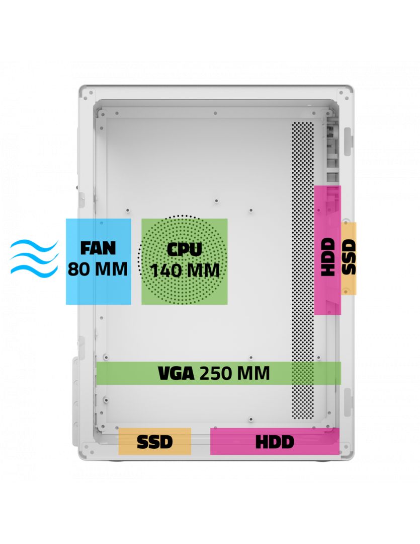 microATX, Black, 2x3,5", 2x2,5", 1xUSB2.0, 1xUSB3.0, Audio, Táp nélkül, 260x165x353mm