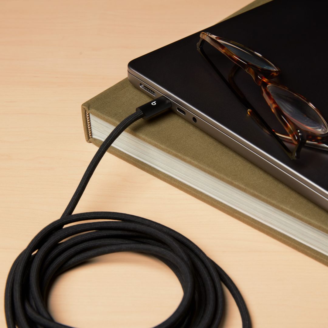 A Beats 3 méteres, 240 W-os USB-C–USB-C töltőkábel összegabalyodásmentes, szőtt kialakítású, ami extra tartósságot és kényelmet biztosít.