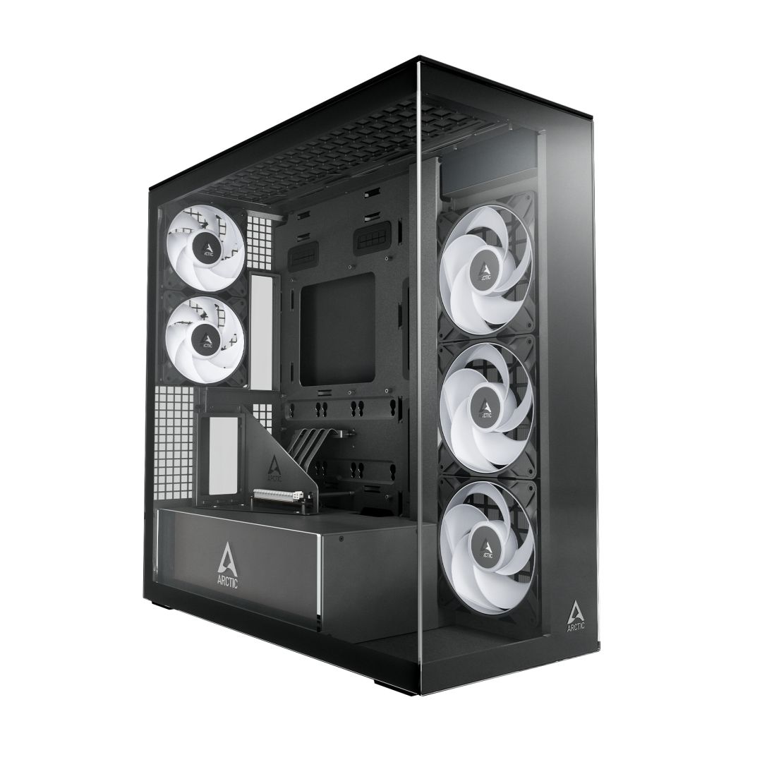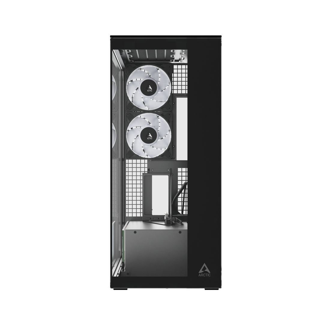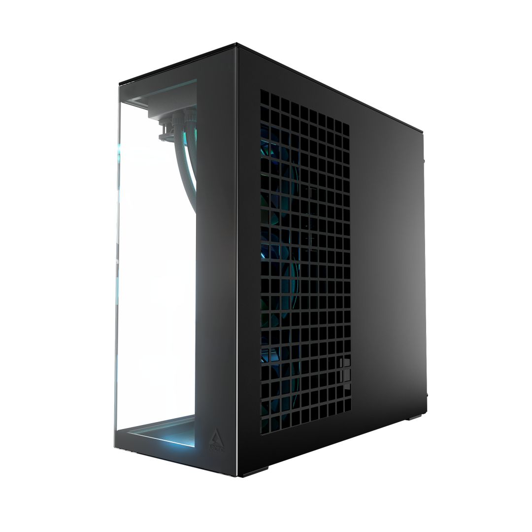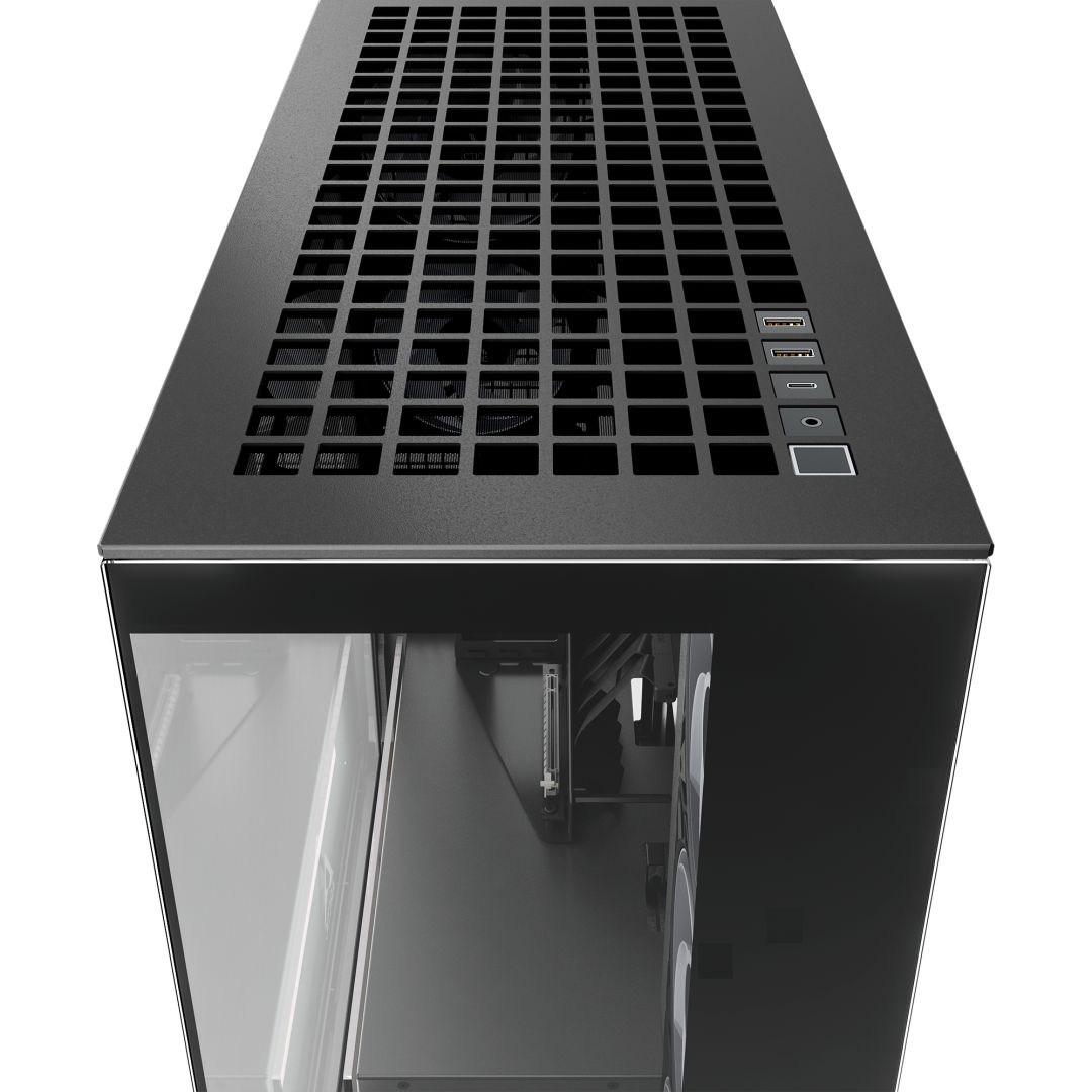 E-ATX, Black, 2x3,5", 4x2,5", 2xUSB3.2, 1xUSB Type-C, Audio, Táp nélkül, 529x529x231mm, Ventilátor:3x14cm, 5x12cm, Tempered glass window, RGB, Gamer