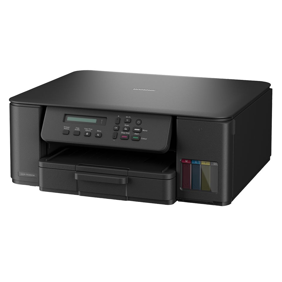 Töltsd fel és nyomtass többet kevesebbért, a szuper nagy kapacitású tintapalackokkal és az egyszerűen feltölthető tintatartályokkal, amelyek csökkentik a színes nyomtatás költségeit. Akár otthoni irodájában, akár nappalijában, akár a konyhában dolgozik, élvezze a könnyű csatlakoztathatóságot és a gyors, problémamentes nyomtatást a 3 az 1-ben tintatartályos DCP-T535DW nyomtatóval. Nyomtasson közvetlenül PC-ről vagy mobilalkalmazásból, vagy szkenneljen könnyedén.