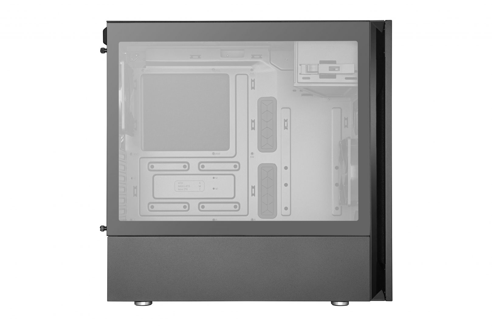 ATX, Black, 1x5,25", 4x3,5", 5x2,5", 2xUSB3.2, Audio, Táp nélkül, 478x209x471mm, Ventilátor:2x12cm, kártyaolvasó, Tempered glass window