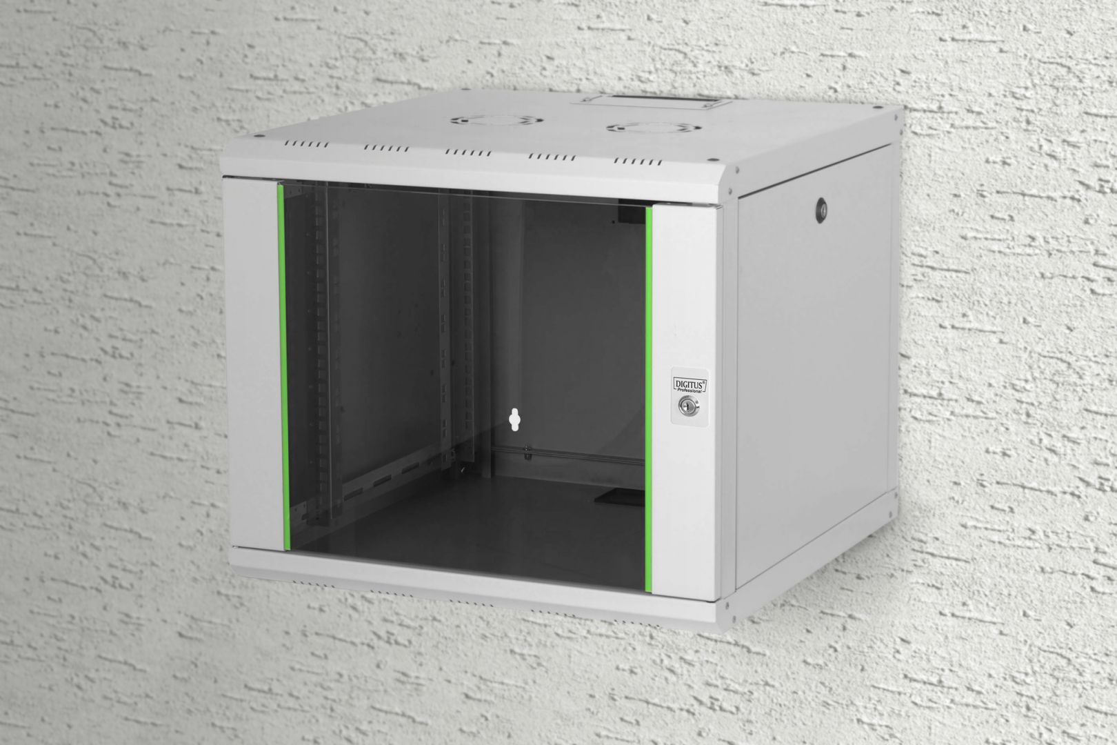 Falra szerelhető, Keret kapacitása:9U, Méret:19", Magasság:559mm, Szélesség:600mm, Mélység:600mm, Grey RAL7035, Összeszerelt