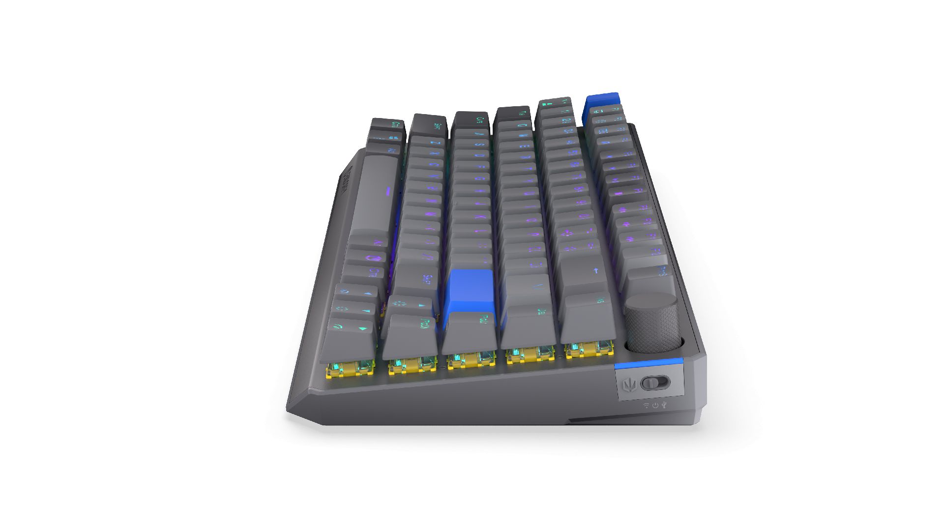Billentyűzet, USB, Wireless 2,4GHz, Bluetooth, Multimédia, Tenkeyless (TKL), Megvilágítás, Mechanikus switch, Yellow switch, Grey, ENG