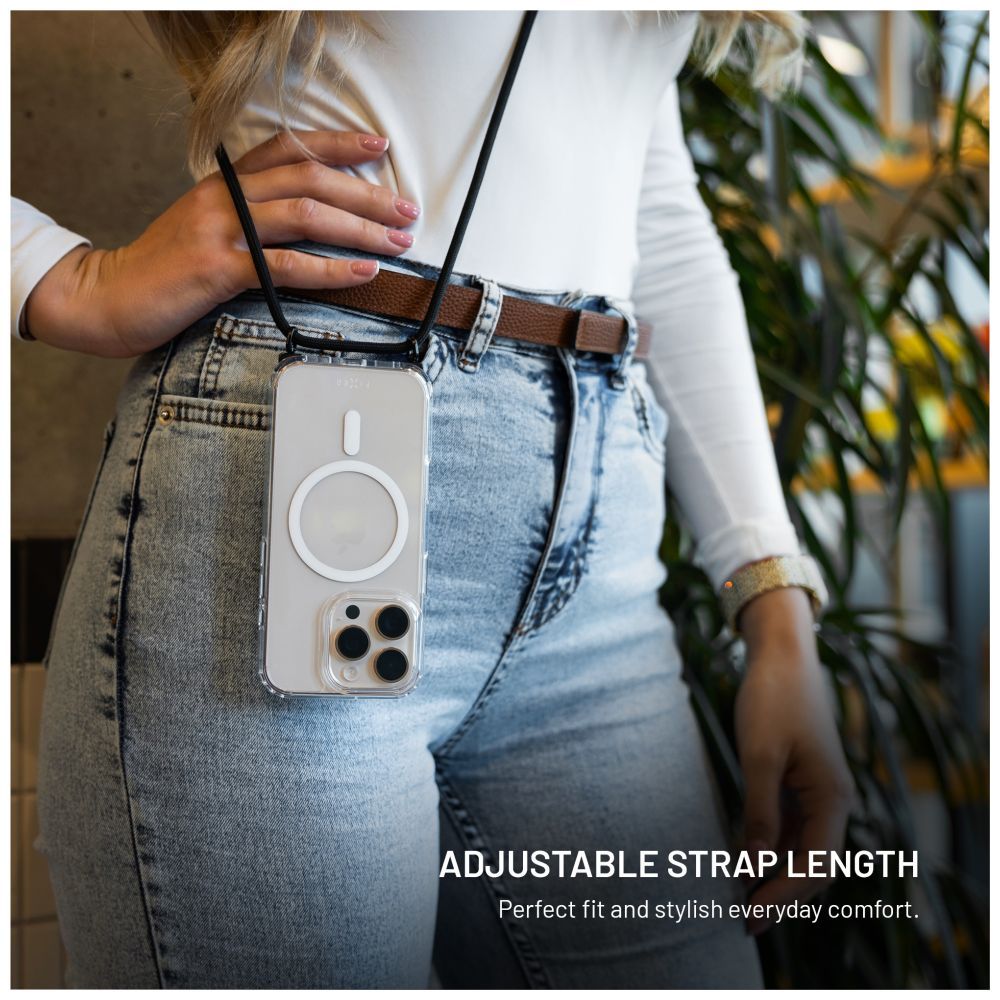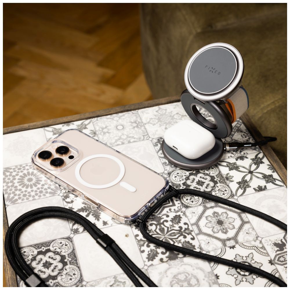 A stílusos FIXED MagPure Neck tok lehetővé teszi, hogy telefonja mindig kéznél legyen, miközben megvédi azt a mindennapi élet buktatóitól. A beépített MagSafe mágnesekkel ellátott védőburkolat egy levehető nyakpánttal van ellátva, amelyet masszív fémszemekkel rögzítünk. Vállon vagy keresztben is hordható, és ha szükséges, egyszerűen leveheti a pántot, és külön használhatja a borítót. A pánt hosszát a kiváló minőségű fém alkatrészeknek köszönhetően könnyen beállíthatja. A tok tartós polikarbonátból készült, puha TPU oldallapokkal kombinálva, amelyek elnyelik az eséseket és ütéseket. Az átlátszó anyag természetesen ellenáll a sárgulásnak is, a kamera és a kijelző területén lévő enyhén megemelt élek pedig megvédik azokat a felülettel való érintkezéstől és az esetleges karcolásoktól. A beépített MagSafe mágneseknek köszönhetően biztonságosan rögzíthető töltőkhöz, tartókhoz és egyéb mágneses kiegészítőkhöz. Akár a városba, akár kirándulni indulsz, a tok stílusos és praktikus megoldást jelent telefonod hordozására.