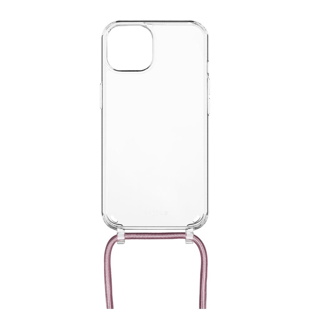 FIXED Pure Neck átlátszó tok Apple iPhone 15 készülékhez, pink nyakpánttal, átlátszó