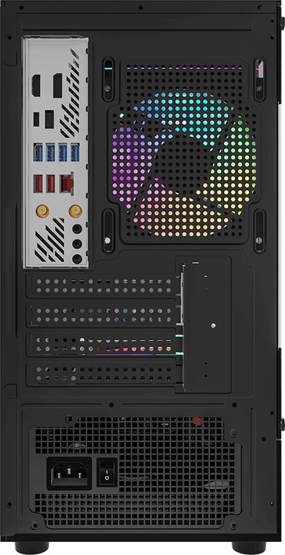 microATX, Black, 1x3,5", 1x2,5", 1xUSB3.0, 1xUSB Type-C, Audio, Táp nélkül, 452x356x242mm, Tempered glass window