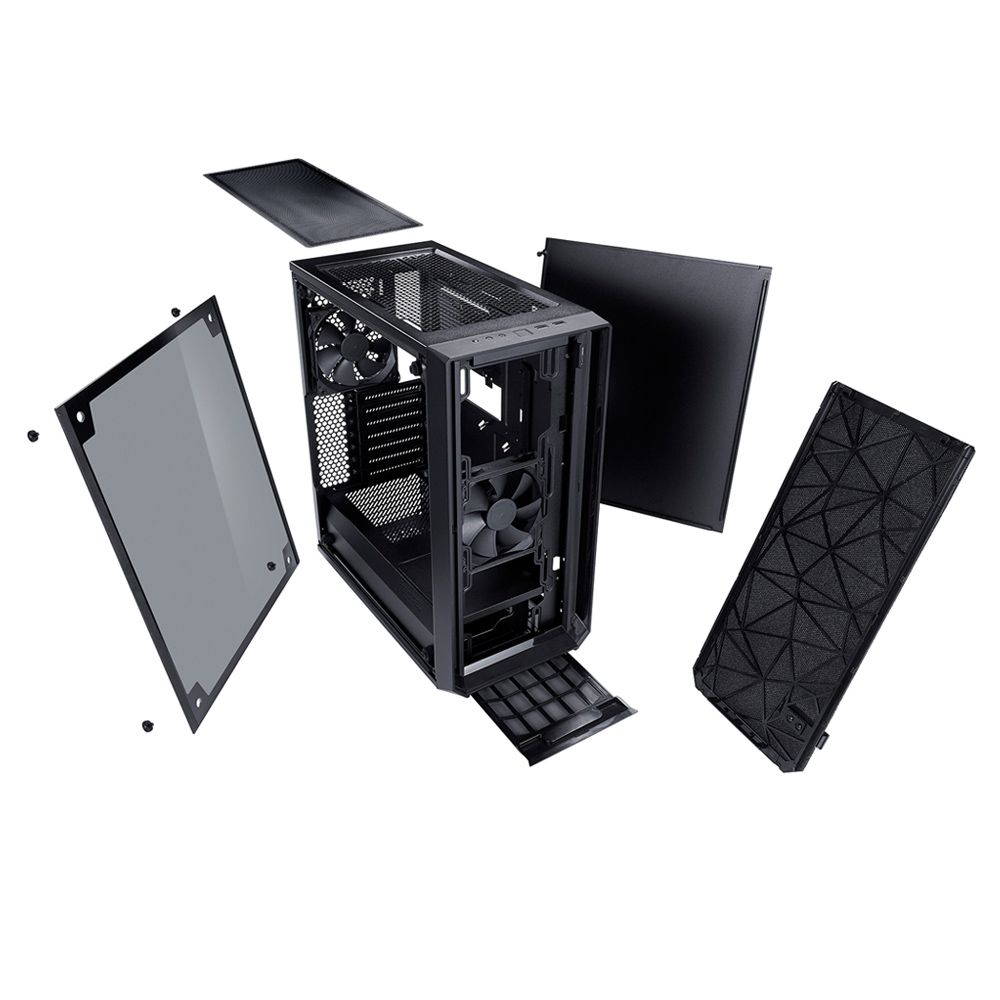 ATX, Black, 2x3,5", 3x2,5", 2xUSB3.0, Audio, Táp nélkül, 395x212x440mm, Ventilátor:2x12cm, Tempered glass window