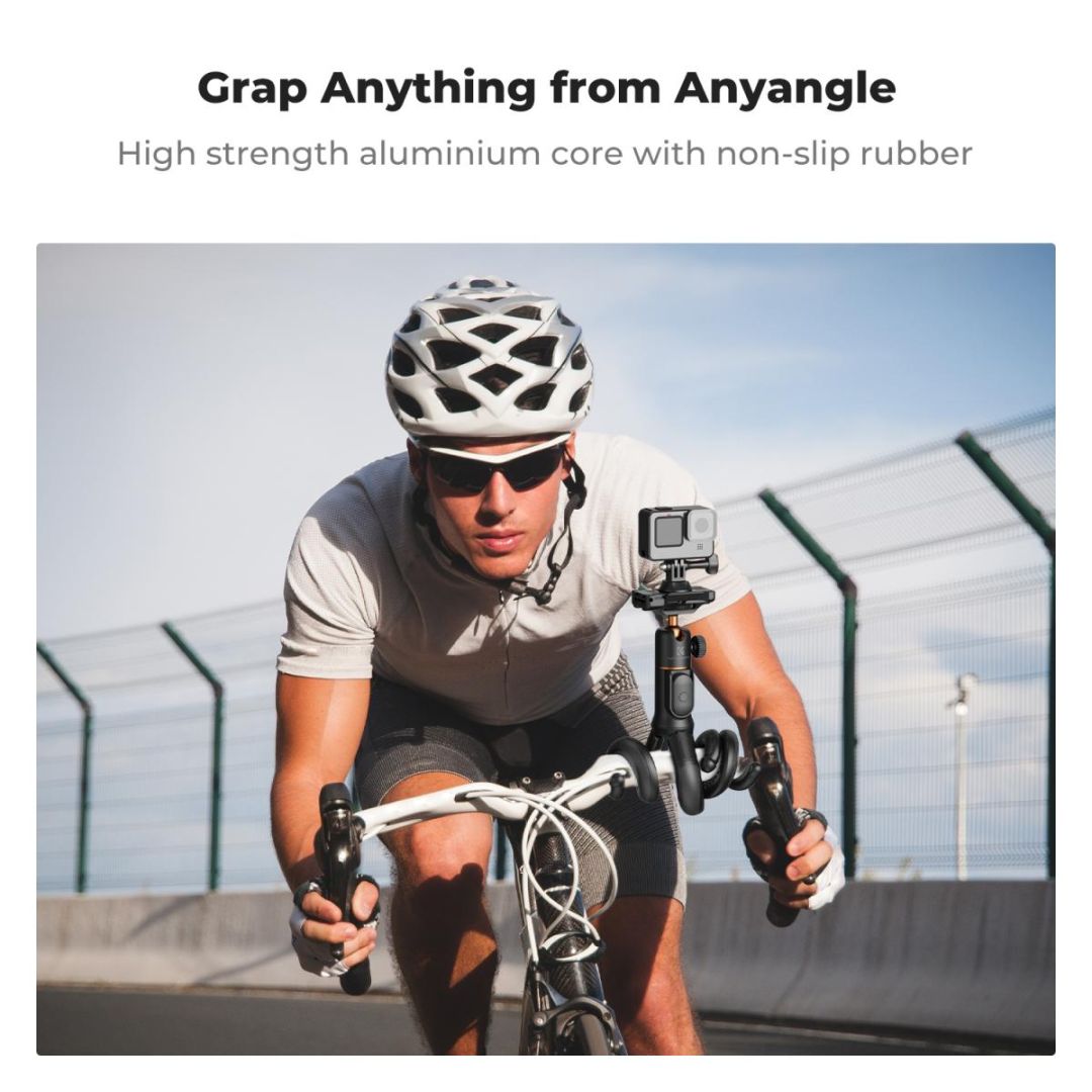 Rugalmas állítható állvány: 26 cm (10,6") és 60 cm (23,6") között hosszabbítható a különböző felvételi szögekhez. A hajlítható lábak biztonságosan körbetekerhetők a korlátok, ágak vagy kormányok körül, így stabil támasztékot biztosít a különböző felületeken.