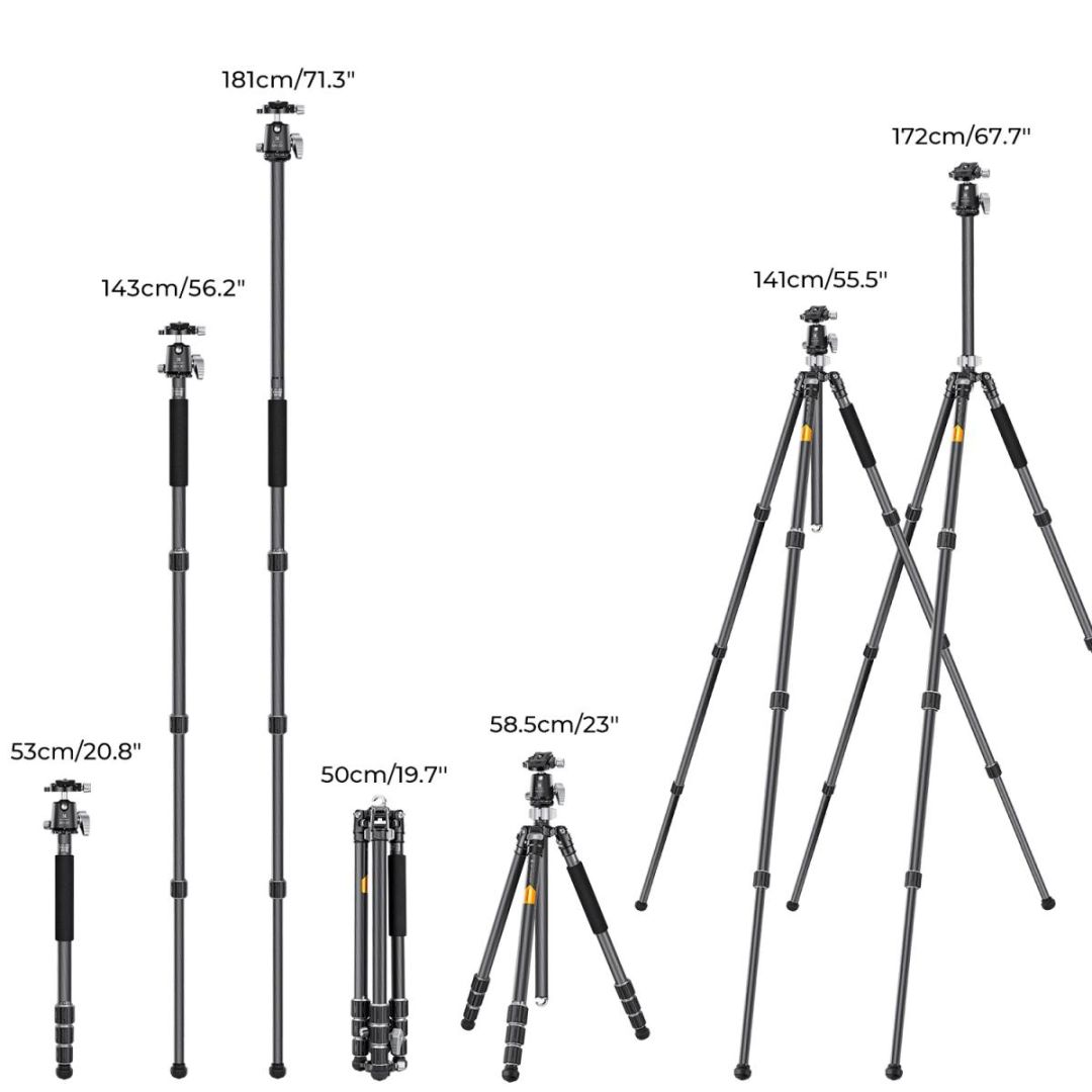 【Magas minőségű anyag】A 25mm-es teljes cső szénszálból készült, könnyebb és erősebb, a nettó súly a gömbfejjel együtt csak 3.41lbs / 1.55 KG, amelyet könnyedén elvihet a szabadban.