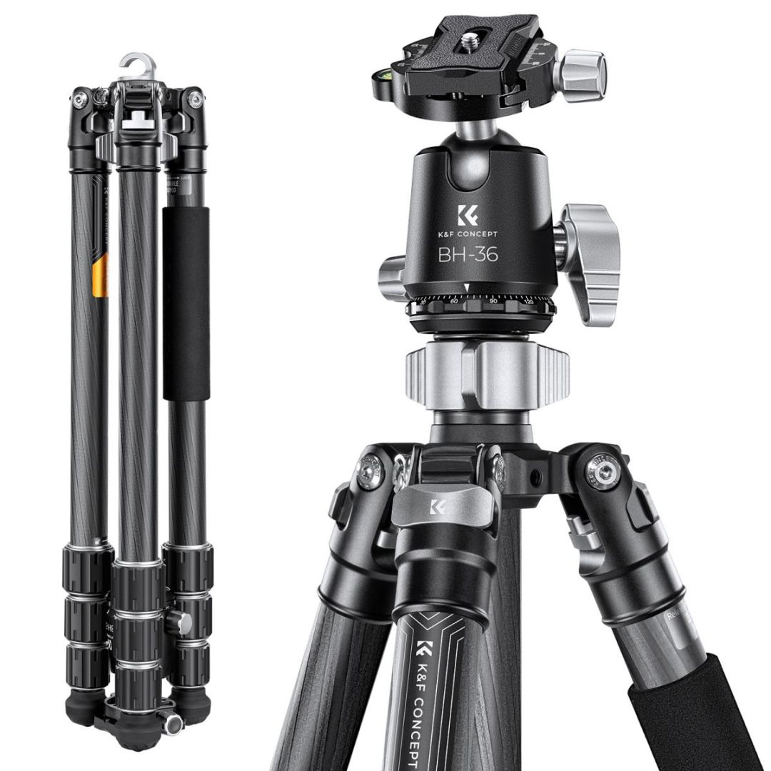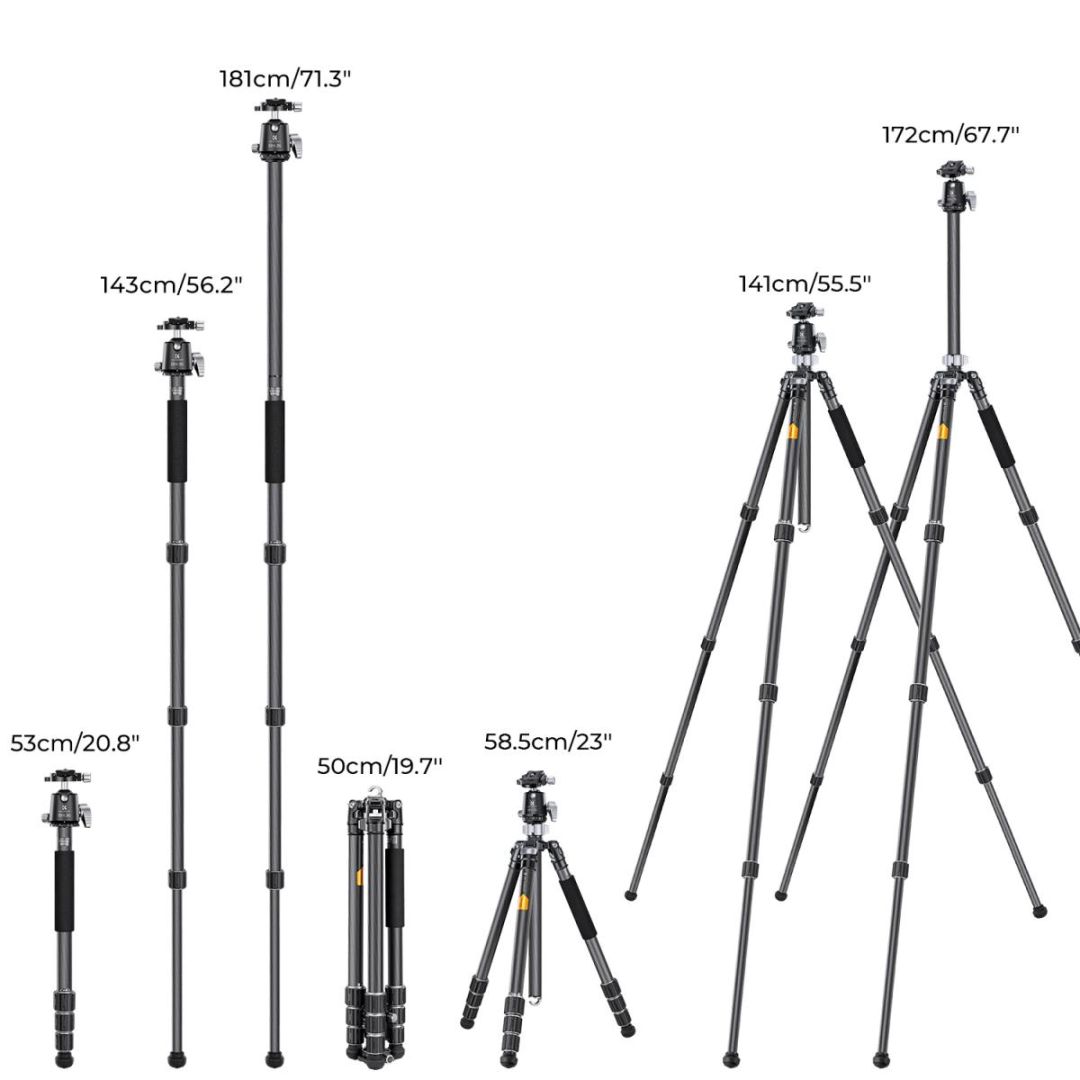 【Magas minőségű anyag】A 28mm-es teljes cső szénszálból készült, könnyebb és erősebb, a nettó súly a gömbfejjel együtt csak 3.88lbs / 1.76 KG, amely könnyen elvihető a szabadban.