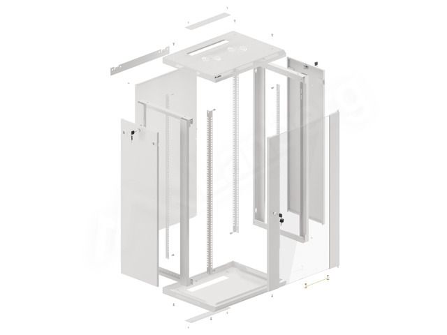 Falra szerelhető, Keret kapacitása:22U, Méret:19", Magasság:1085mm, Szélesség:600mm, Mélység:450mm, Grey RAL7035, Lapraszerelt