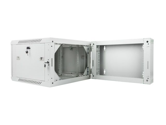 Falra szerelhető, Keret kapacitása:6U, Méret:19", Magasság:374mm, Szélesség:600mm, Mélység:600mm, Grey RAL7035, Lapraszerelt