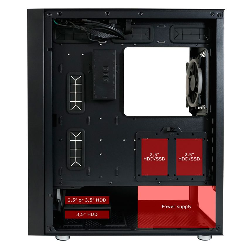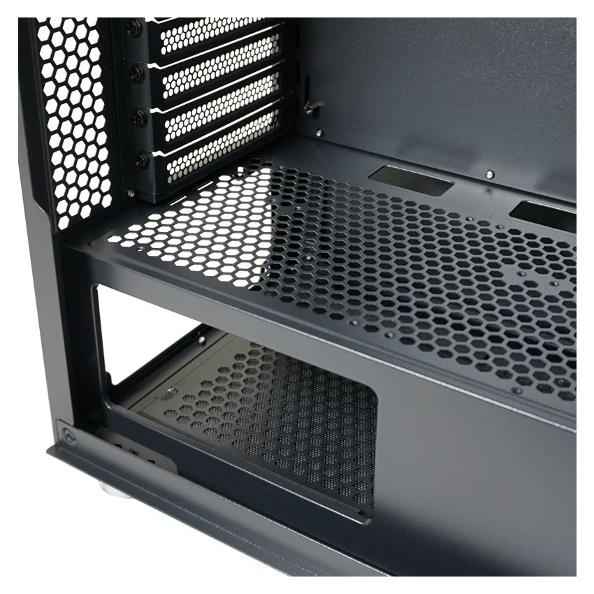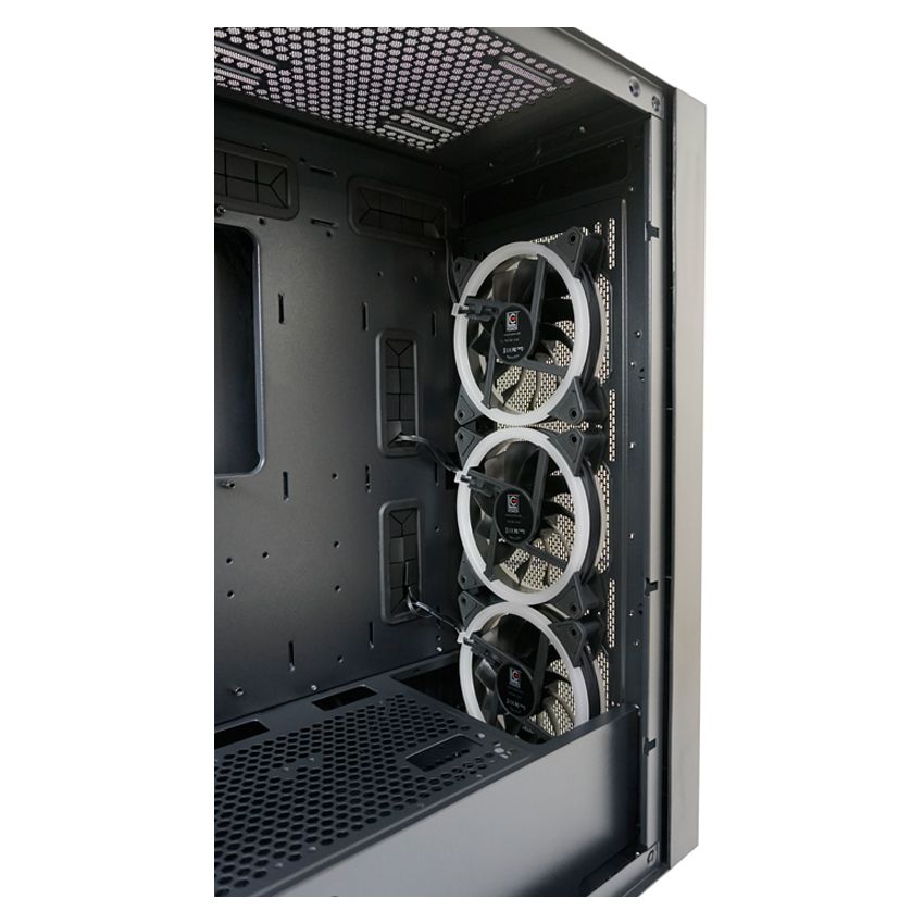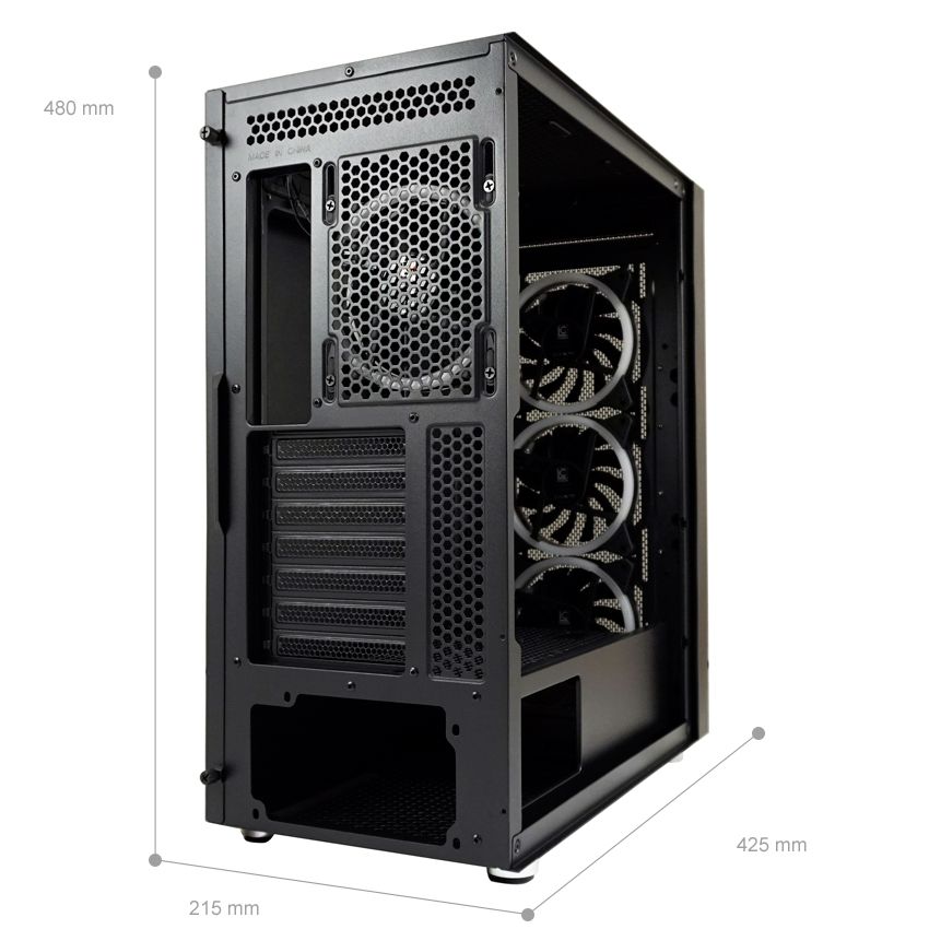 E-ATX, Black, 2x3,5", 3x2,5", 2xUSB2.0, 1xUSB3.2, 1xUSB Type-C, Audio, Táp nélkül, 480x215x425mm, Ventilátor:4x12cm, Tempered glass window, RGB, Gamer