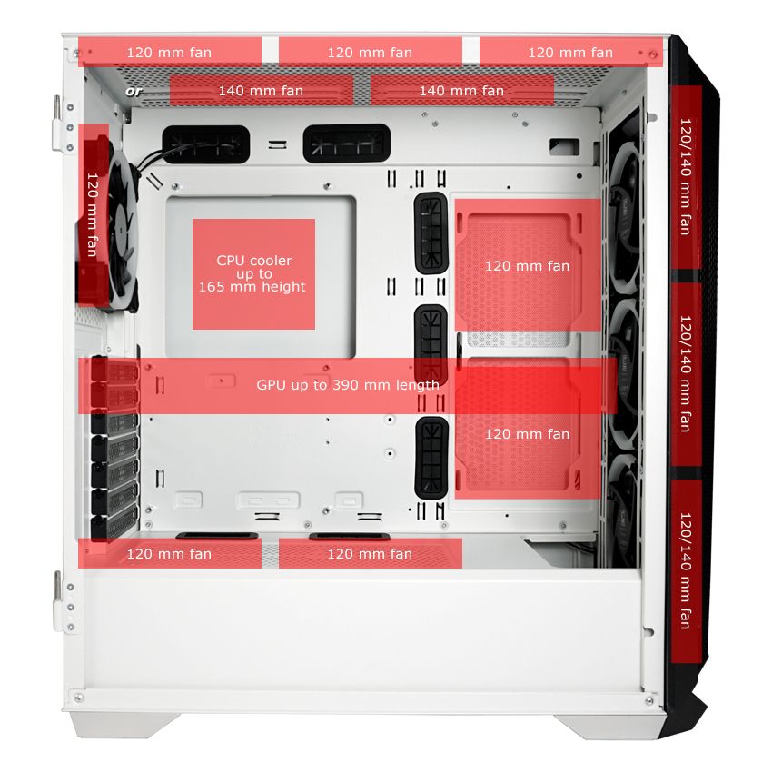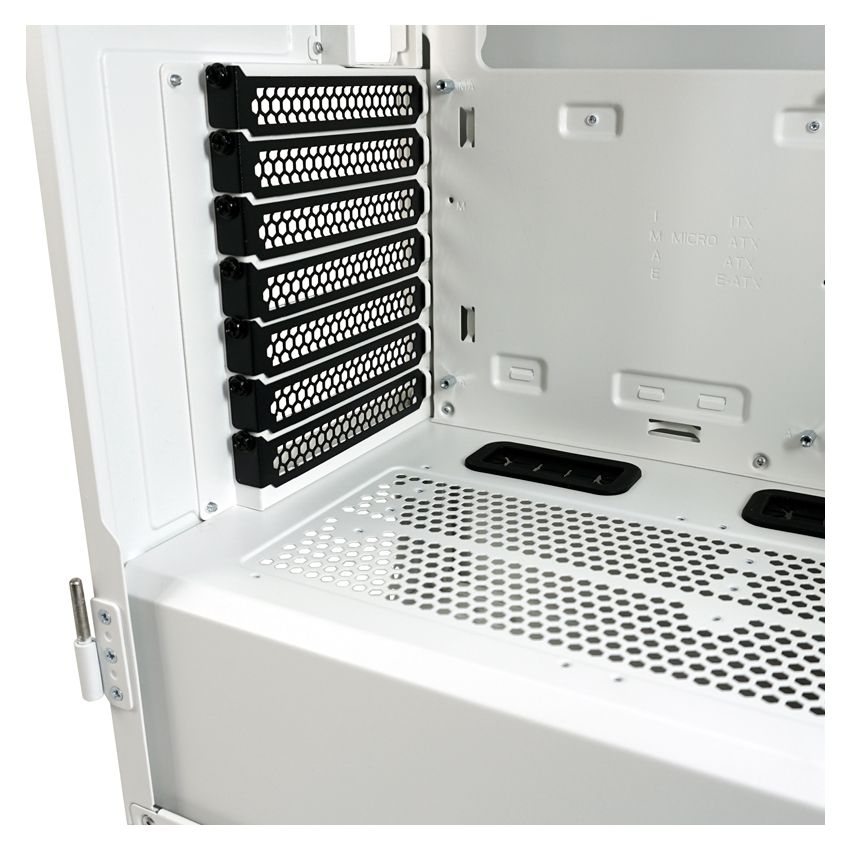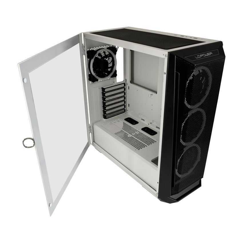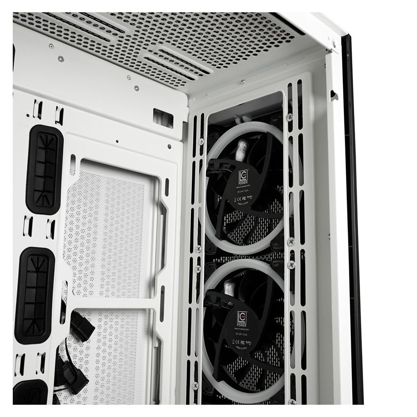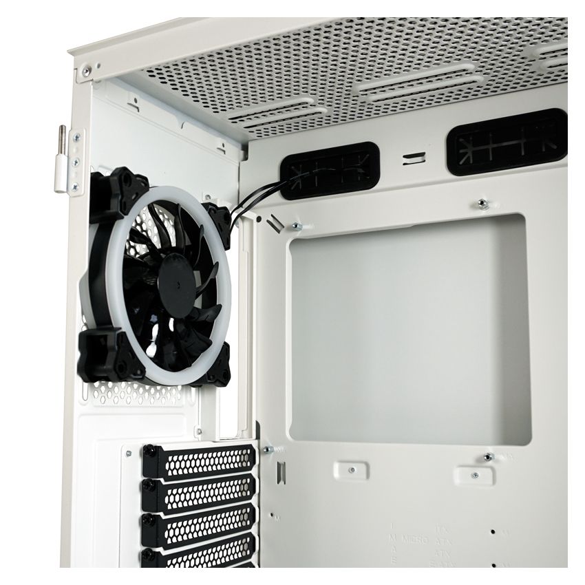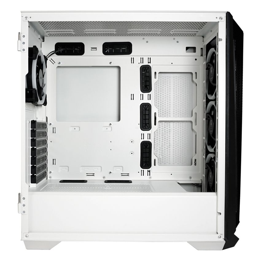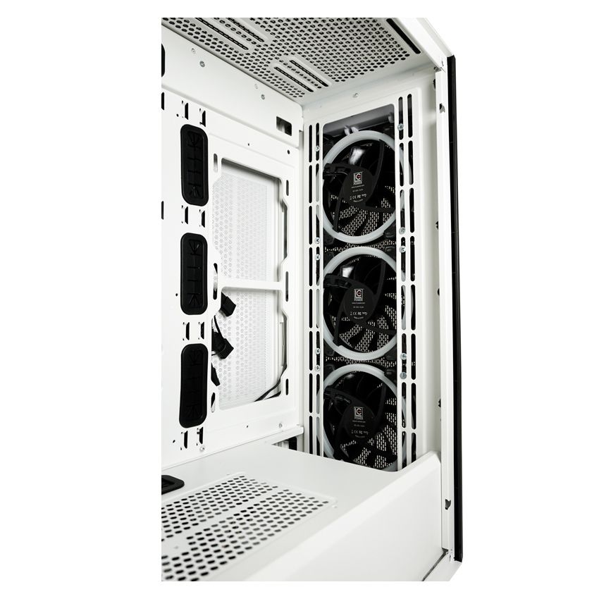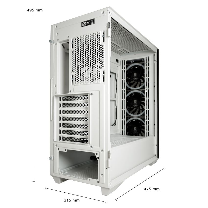 E-ATX, White/Black, 2x3,5", 4x2,5", 2xUSB3.2, 1xUSB Type-C, Audio, Táp nélkül, 495x215x475mm, Ventilátor:4x12cm, Tempered glass window, RGB, Gamer