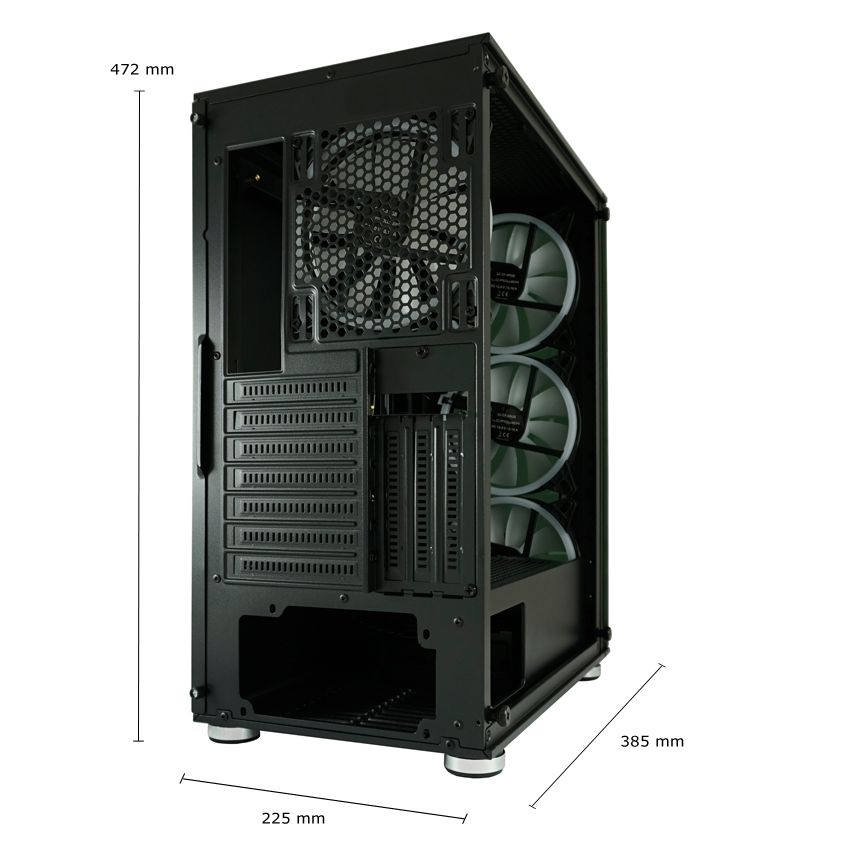 ATX, Black, 3x3,5", 2x2,5", 1xUSB2.0, 2xUSB3.0, Audio, Táp nélkül, 472x225x385, Ventilátor:4x14cm, Tempered glass window, RGB, Gamer