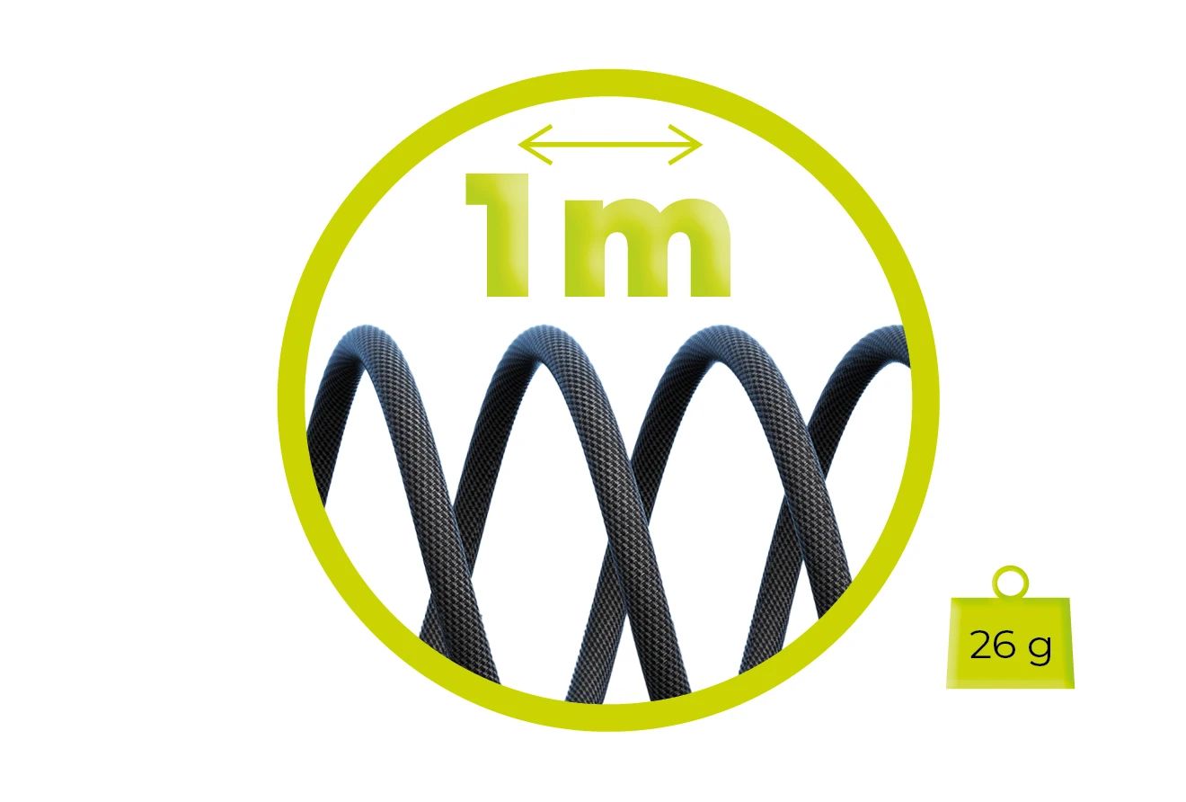 1 méteres hosszával ez a kábel helyet takarít meg, és ideális az utazáshoz. Súlya mindössze 26 g.