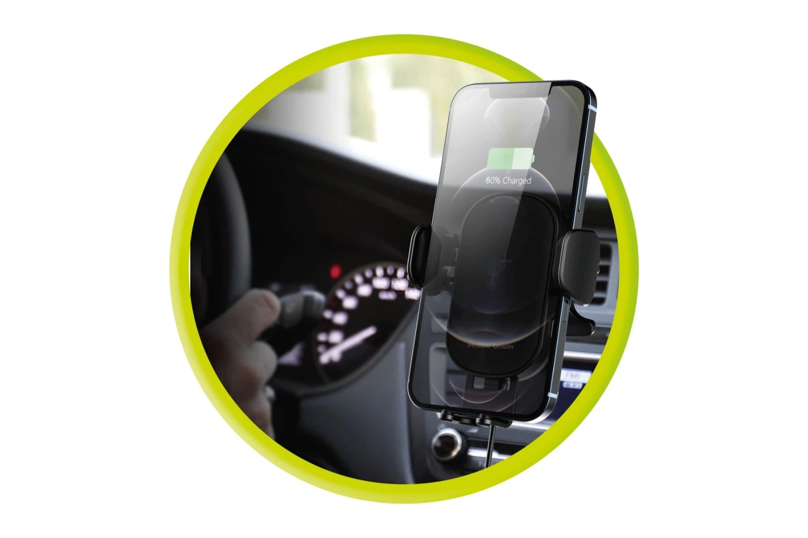 Egyszerűen nyomja meg az oldalán lévő gombot - a két kar kinyílik, és egyszerűen elhelyezheti Qi-kompatibilis telefonját. A töltés azonnal megkezdődik, a karok pedig automatikusan rögzülnek a biztonságos tartás érdekében. Szeretné kivenni a telefonját? Csak nyomja meg újra a gombot, és a karok kioldódnak - technológia, amely az Ön kényelmére gondol!