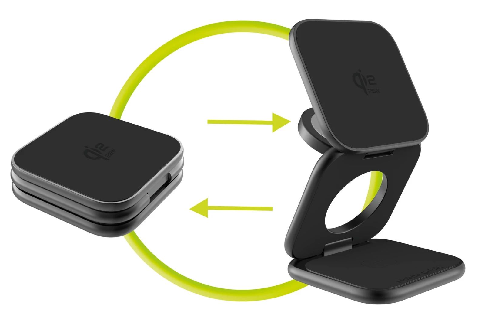 A teljes értékű 3 az 1-ben állványtól az ultravékony kiegészítőig másodpercek alatt. Egyedülálló összecsukható kialakításának köszönhetően a töltő alkalmazkodik az Ön életviteléhez. Csak pattintsa össze és indulhat – teljes töltési megoldása most már a tenyerébe is belefér.