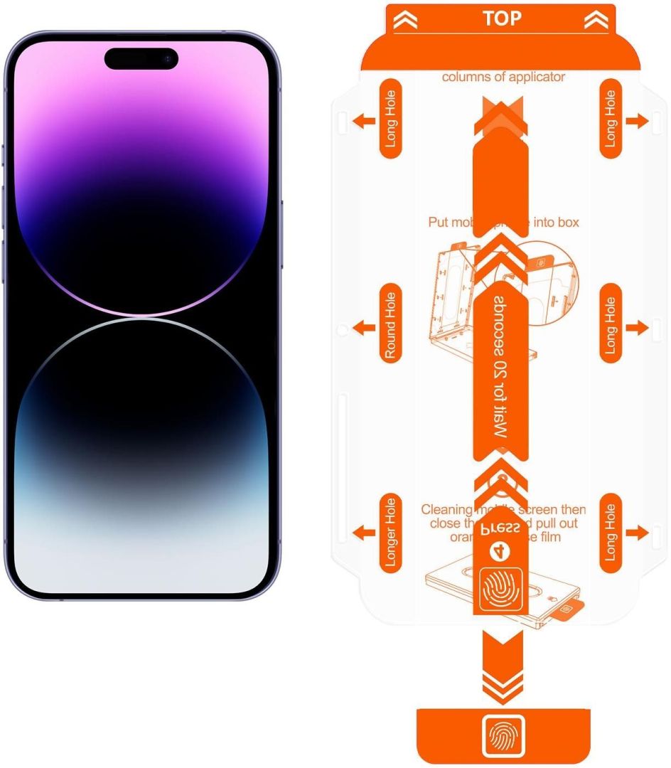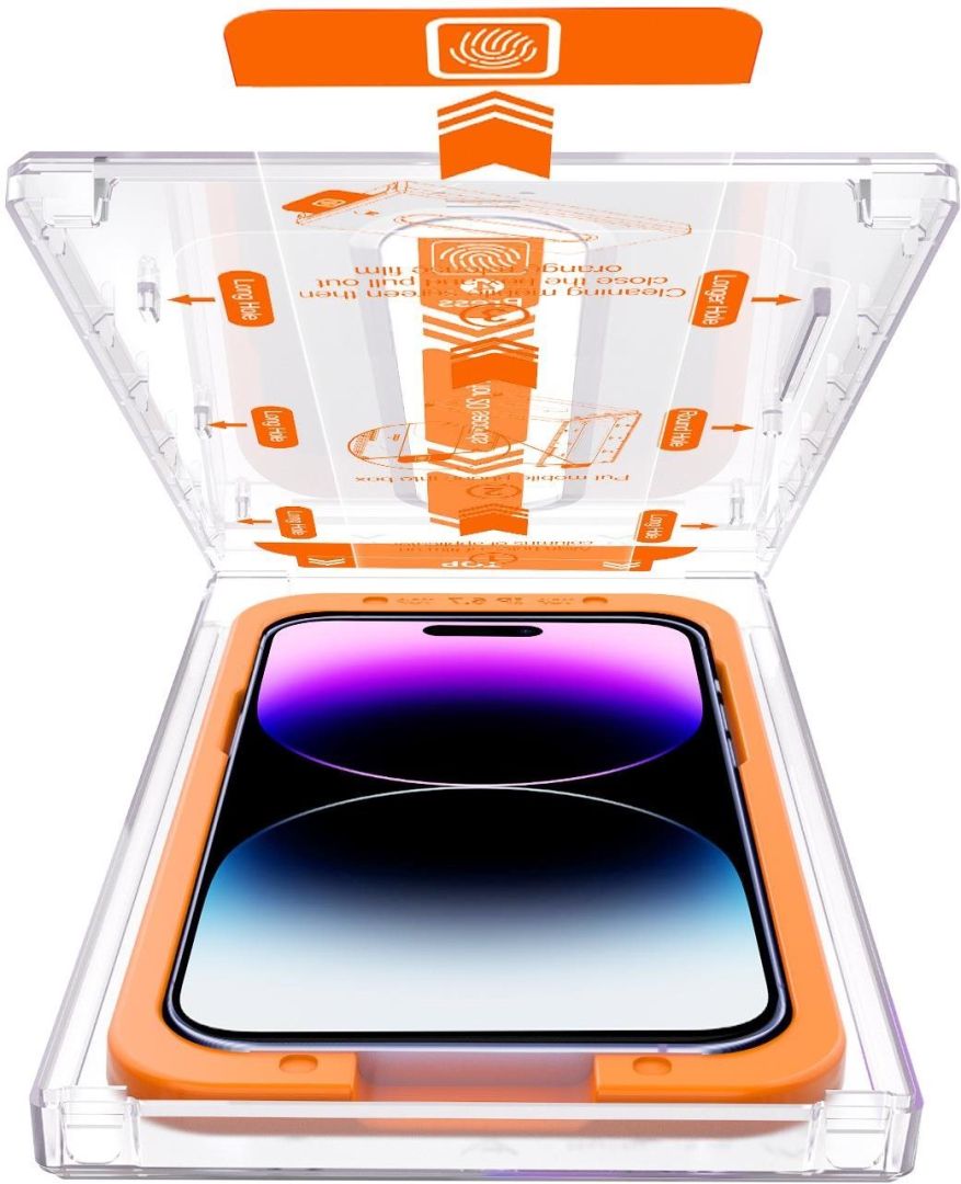 Üvegfólia - Apple iPhone 14 Pro Max üvegfólia, 2.5D ívelés, 9H keménységgel, 0,3 mm üvegvastagsággal, a csomag részét alkotja: szerelőkeret, törlőkendő, alkoholos kendő, poreltávolító matrica és telepítőfólia.