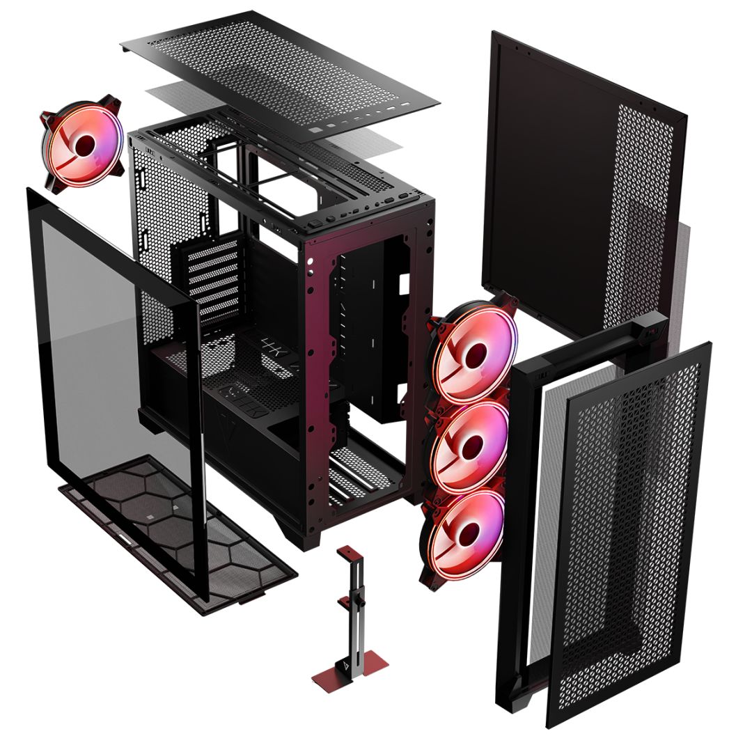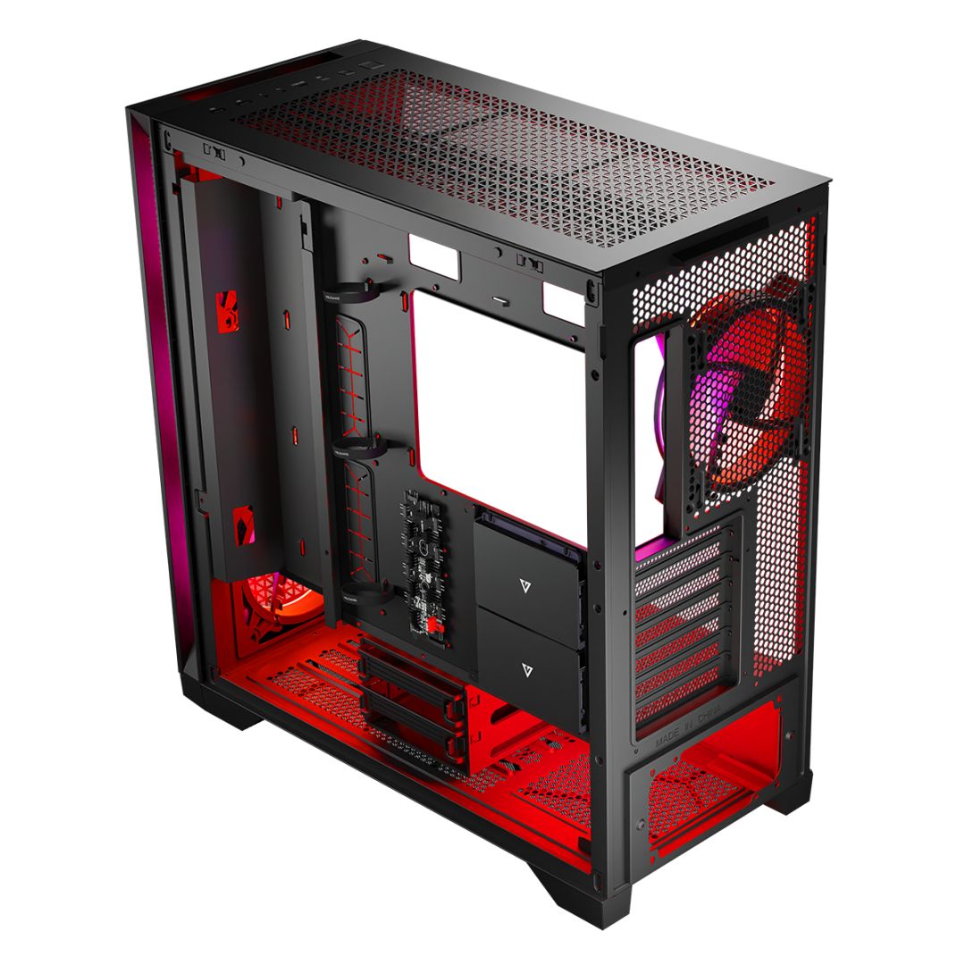 ATX, Black, 3x3,5", 2x2,5", 2xUSB3.0, 1xUSB Type-C, Audio, Táp nélkül, 490x235x505mm, Ventilátor:4x14cm, Tempered glass window, RGB, Gamer