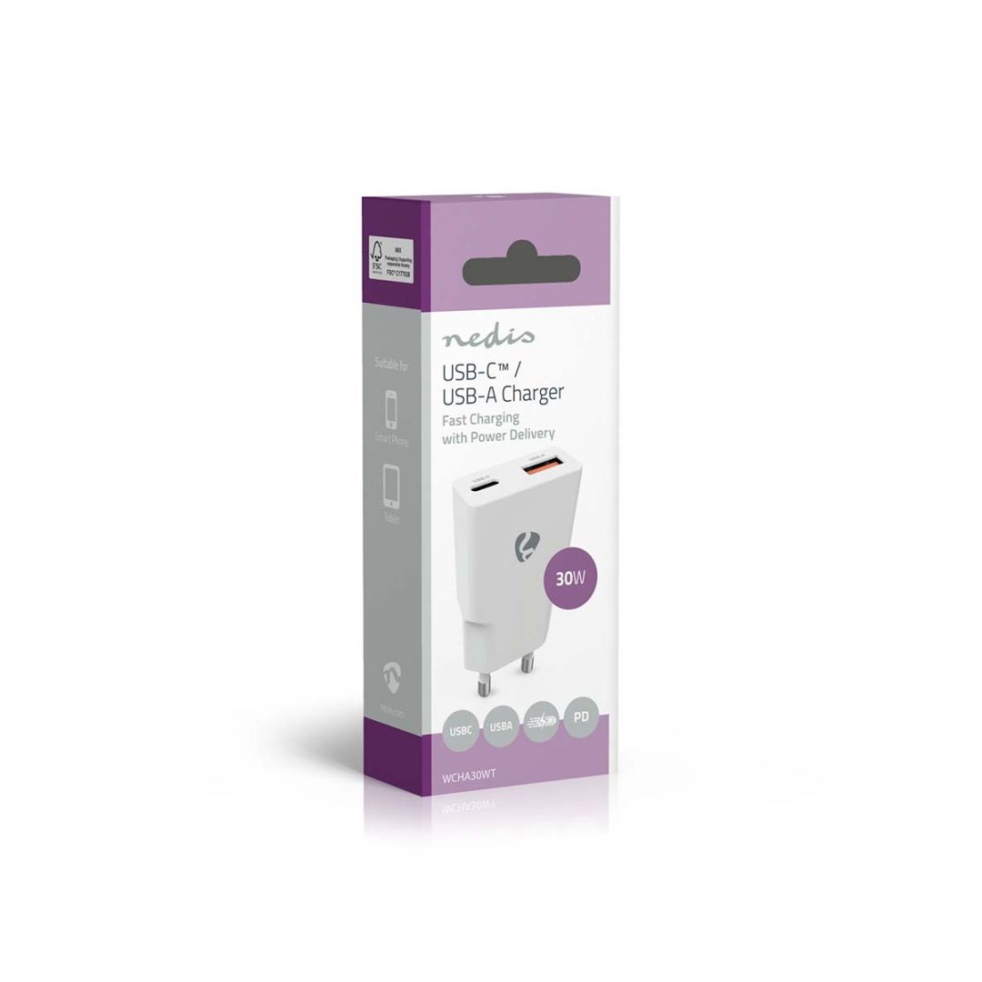 Adapter, 1xUSB-A, 1xUSB-C, 5V/9V/12V/15V/20V, 3A, 30W, PD, White