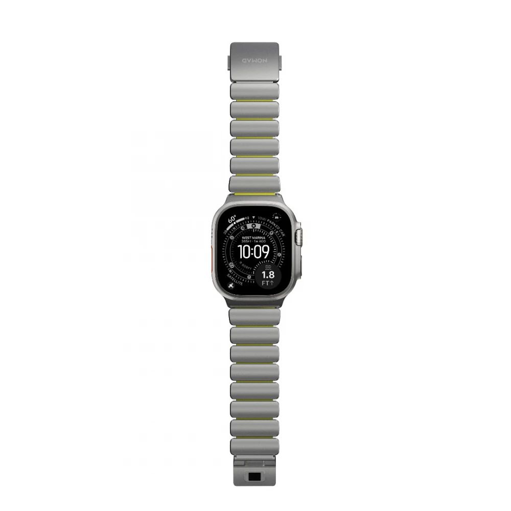 A Stratos ötvözi a 4. fokozatú titán szilárdságát a préselt FKM műszaki kényelmével: úgy néz ki, mint egy fém karkötő, de úgy viselhető, mint egy sport karkötő. Karcálló DLC bevonata, az FKM magban található szellőzőcsatornák és a mikroszabályozható mágneses csat biztosítják a tartósságot, a kényelmet és a pontos illeszkedést mindennapi viselethez és intenzív edzéshez. A hibrid kialakítás feltárja az FKM színét, ipari, kortárs jelleget kölcsönözve, amely minden Apple Watch-ot felértékeli.