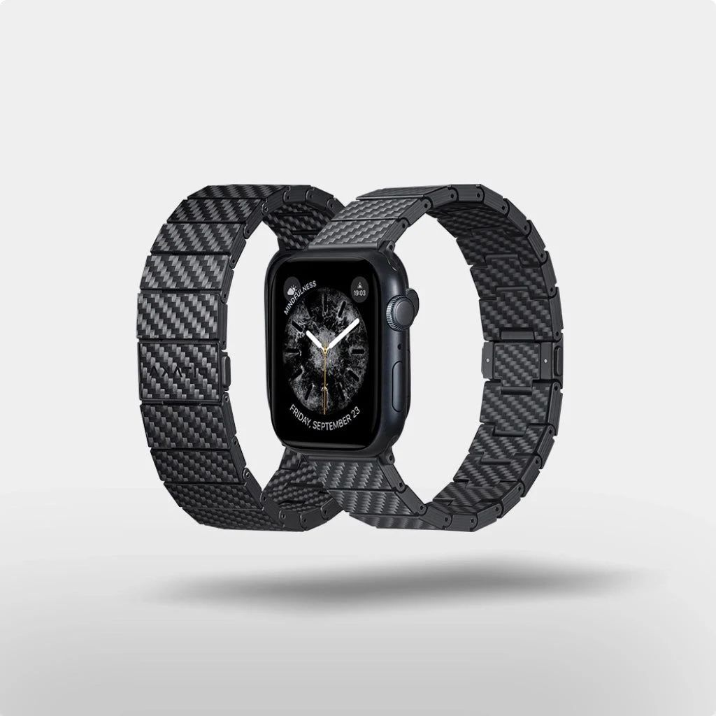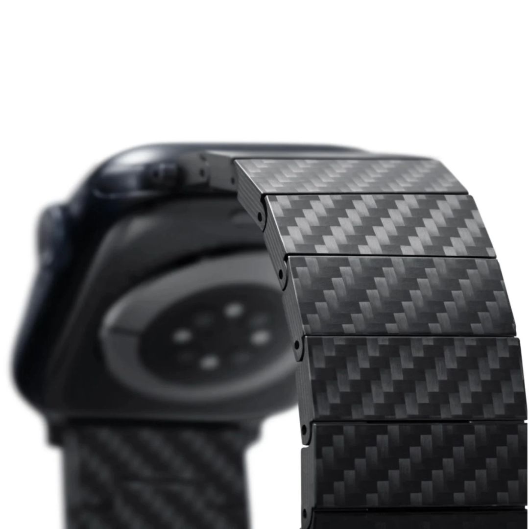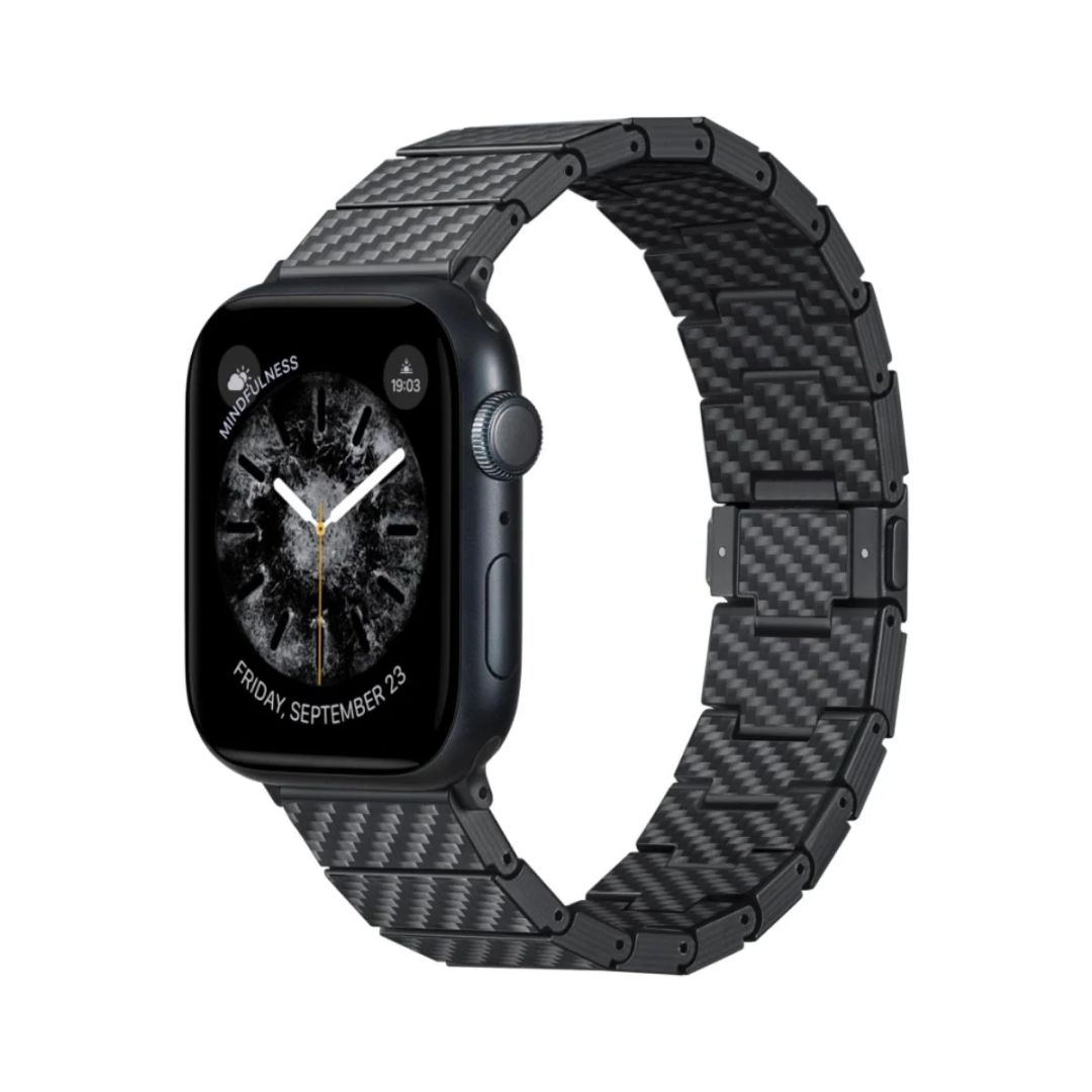 A világ első, 100% szénszálas láncszemekkel ellátott óraszalagja, amely kompatibilis az összes Apple Watch modellel.