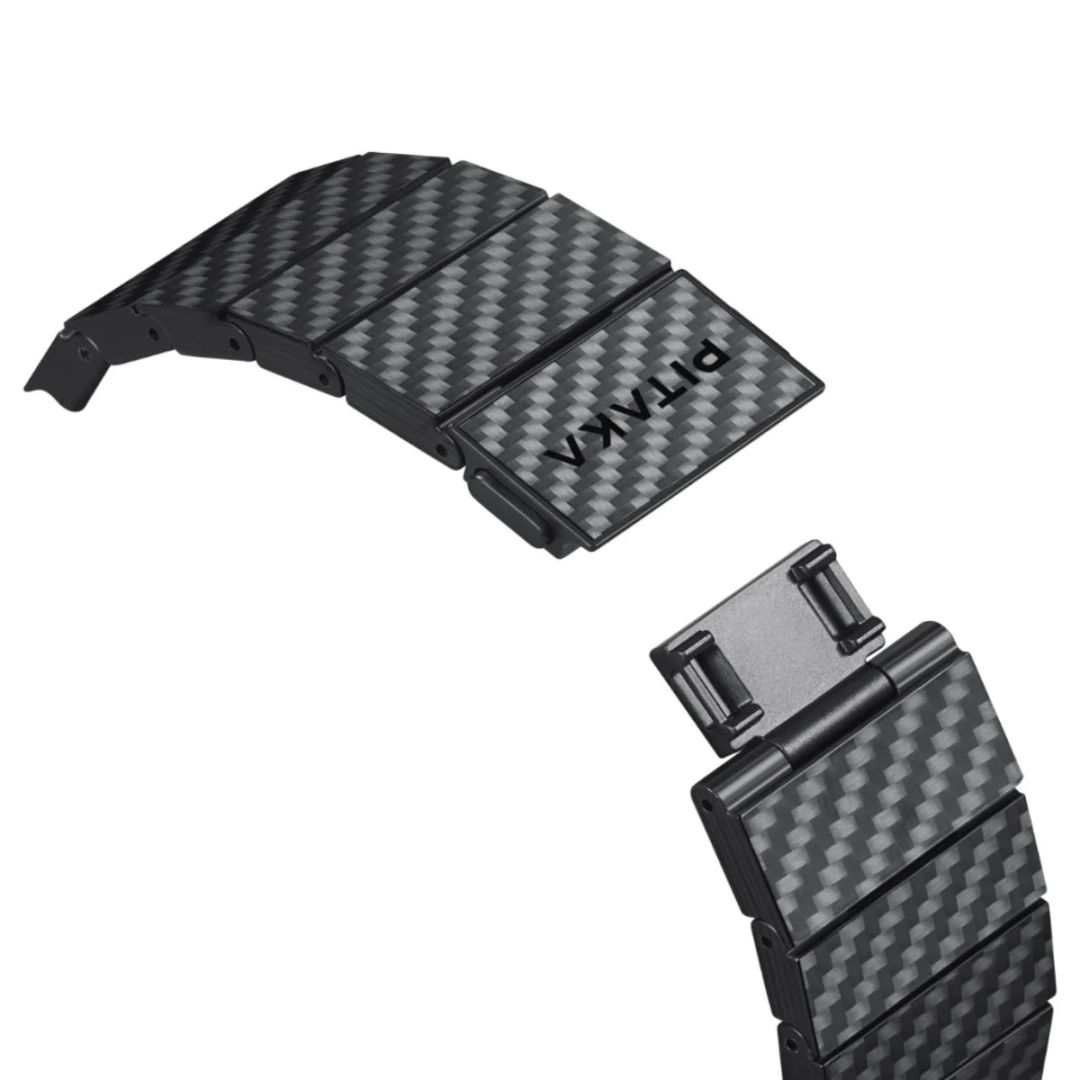 A szénszál, amelyet kiemelkedő szilárdsága, könnyűsége, valamint karcolás- és korrózióállósága miatt nagyra értékelnek, gyakran megtalálható a repülőgépiparban. A PITAKA órapántok minden egyes láncszeme több mint 15 réteg 1K szénszálas szövetből készült. A bonyolult öntési technikákkal feldolgozott szénszálas szíjak kifinomult textúrát és minőséget biztosítanak, amelyek túlélnek más társaiknál.