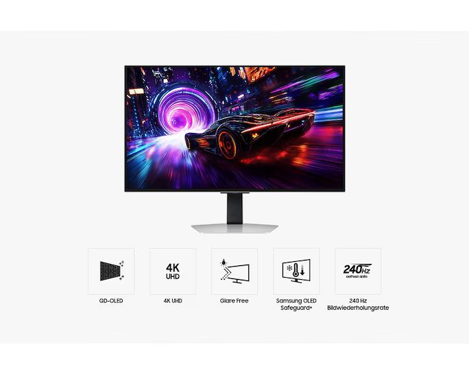 16:9, 3840x2160, 32", 4K, OLED, QD-OLED, 240Hz, 0,03ms, 1M:1, 260cd/m2, DP, 2xHDMI, 2xUSB3.2, FreeSync, Silver, Állítható magasság, RGB, Gamer