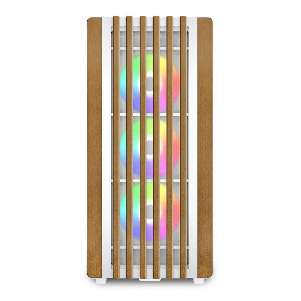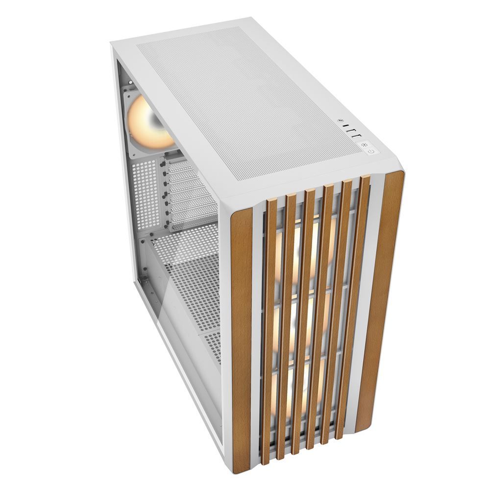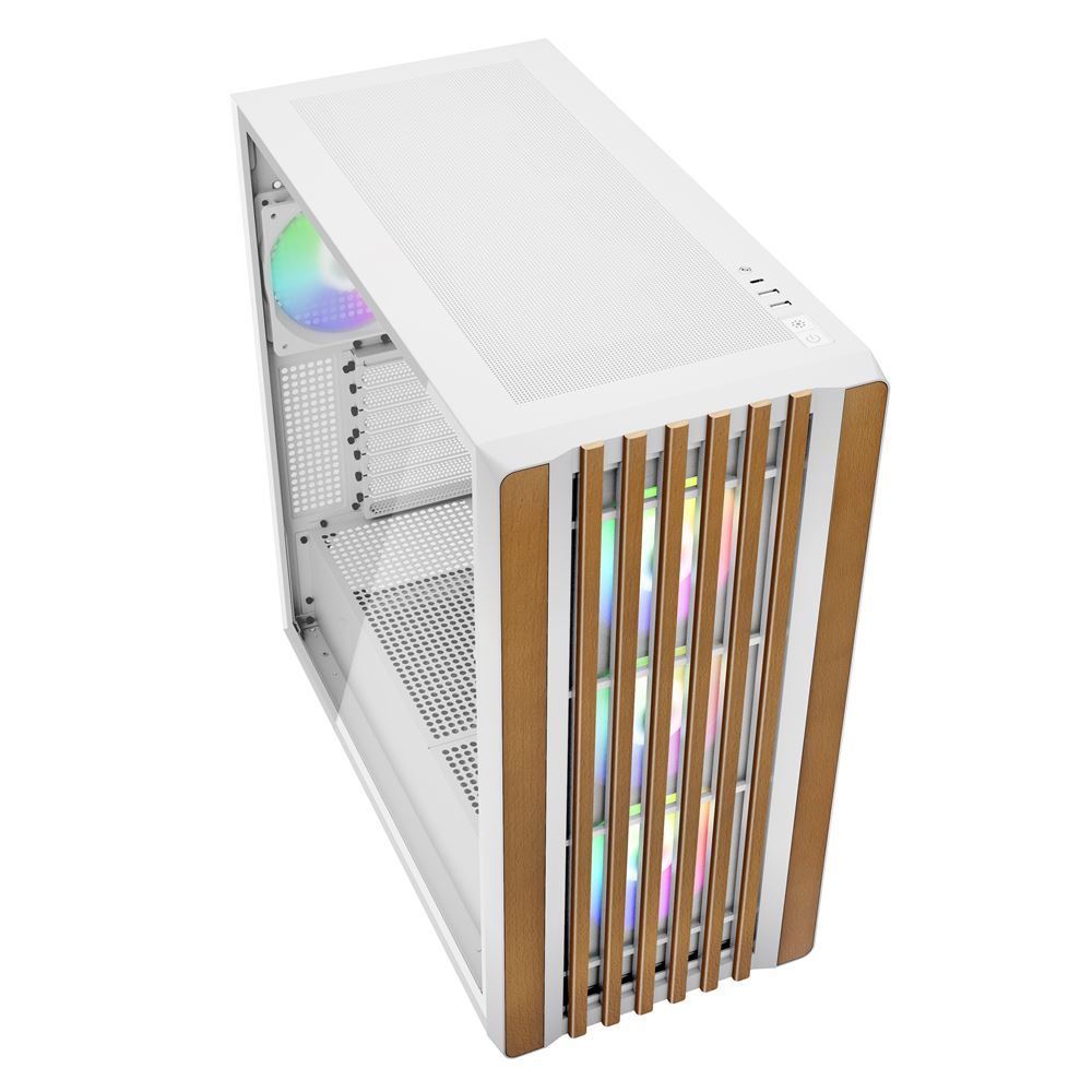 ATX, White/Wood, 3x3,5", 3x2,5", 2xUSB3.0, 1xUSB Type-C, Audio, Táp nélkül, 479x230x495mm, Ventilátor:4x12cm, Tempered glass window, RGB, Gamer