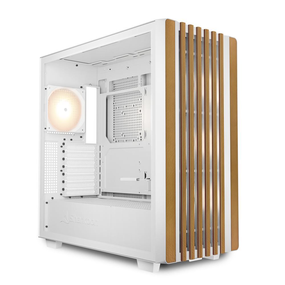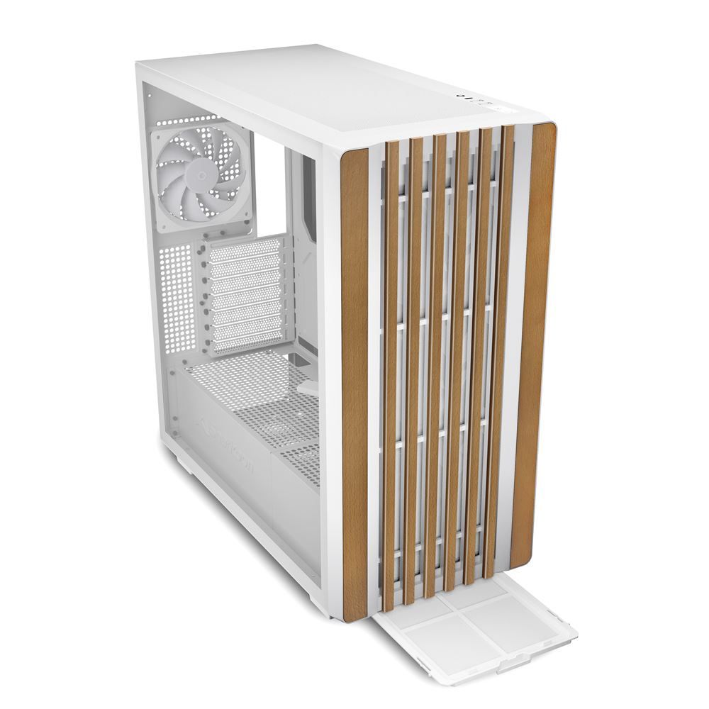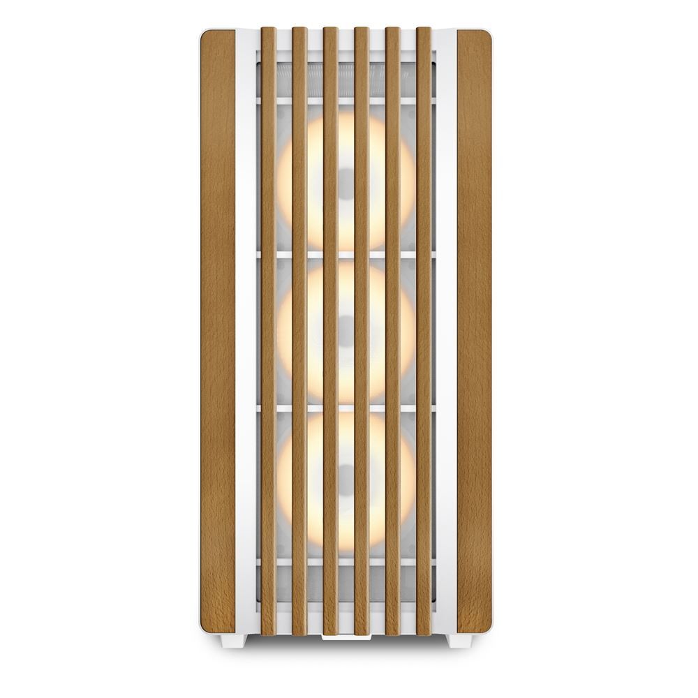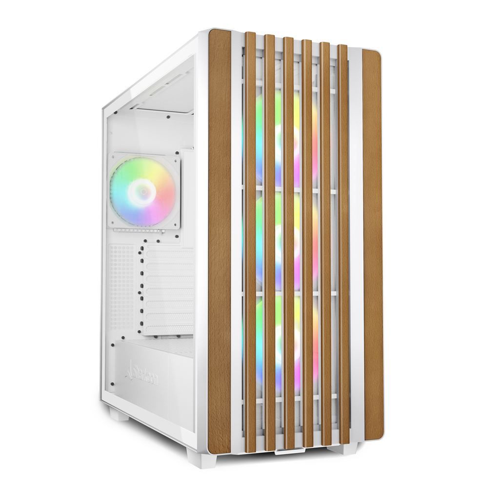 ATX, White/Wood, 3x3,5", 3x2,5", 2xUSB3.0, 1xUSB Type-C, Audio, Táp nélkül, 479x230x495mm, Ventilátor:4x12cm, Tempered glass window, RGB, Gamer