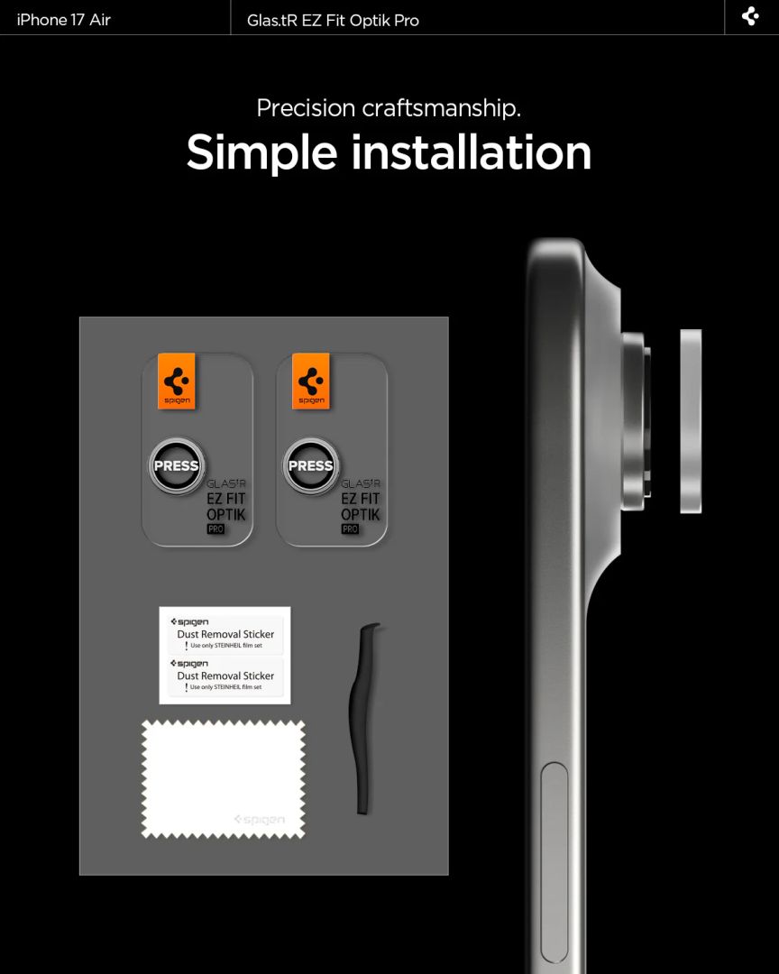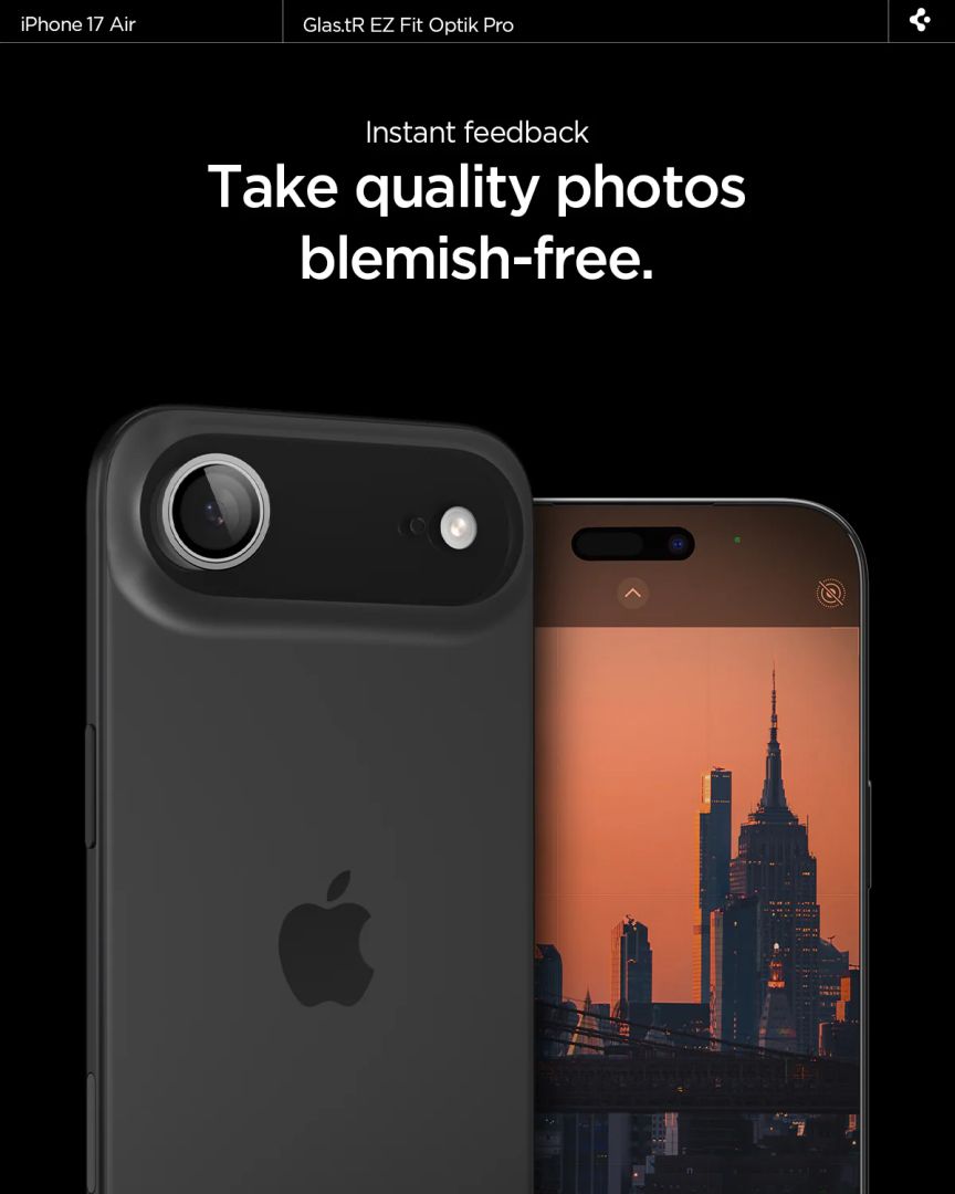 Tartsa fenn a jó kilátásokat. Az EZ Fit Optik Pro minden szögből védi iPhone 17 kamerájának lencséjét. Kapja meg a pontos illeszkedést, amire mindig is vágyott. Az EZ fit tálca segítségével igazítsa közvetlenül a lencsére, és nyomja le a tökéletes illeszkedés érdekében. Megszereztük neked.