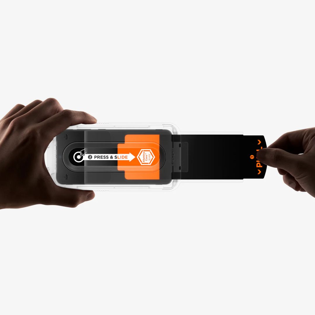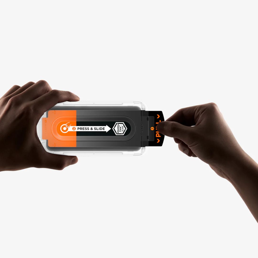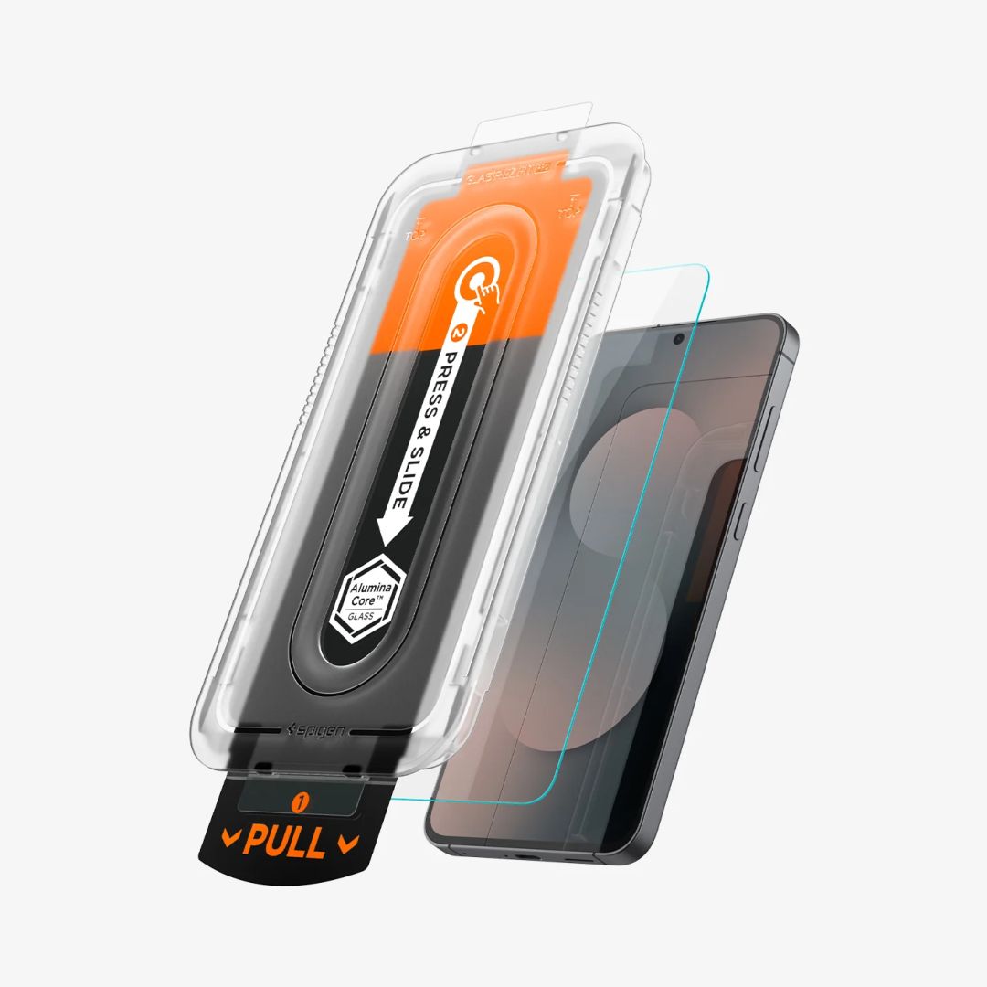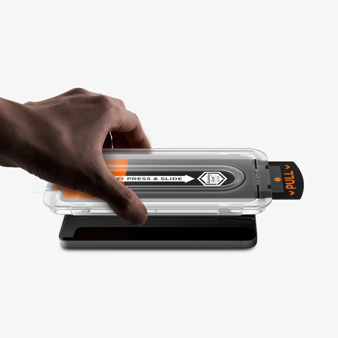 Légy hős. Mentsd meg a képernyődet és az idődet. Az EZ Fit segítségével úgy szerelhetsz fel képernyővédőt a Galaxy S25 FE készülékedre, mint még soha. A tálca segítségével igazítsd a képernyővédőt a Galaxy S25 FE készülékeden. Nyomd le, húzd le, és már mehet is. Könnyen megy.