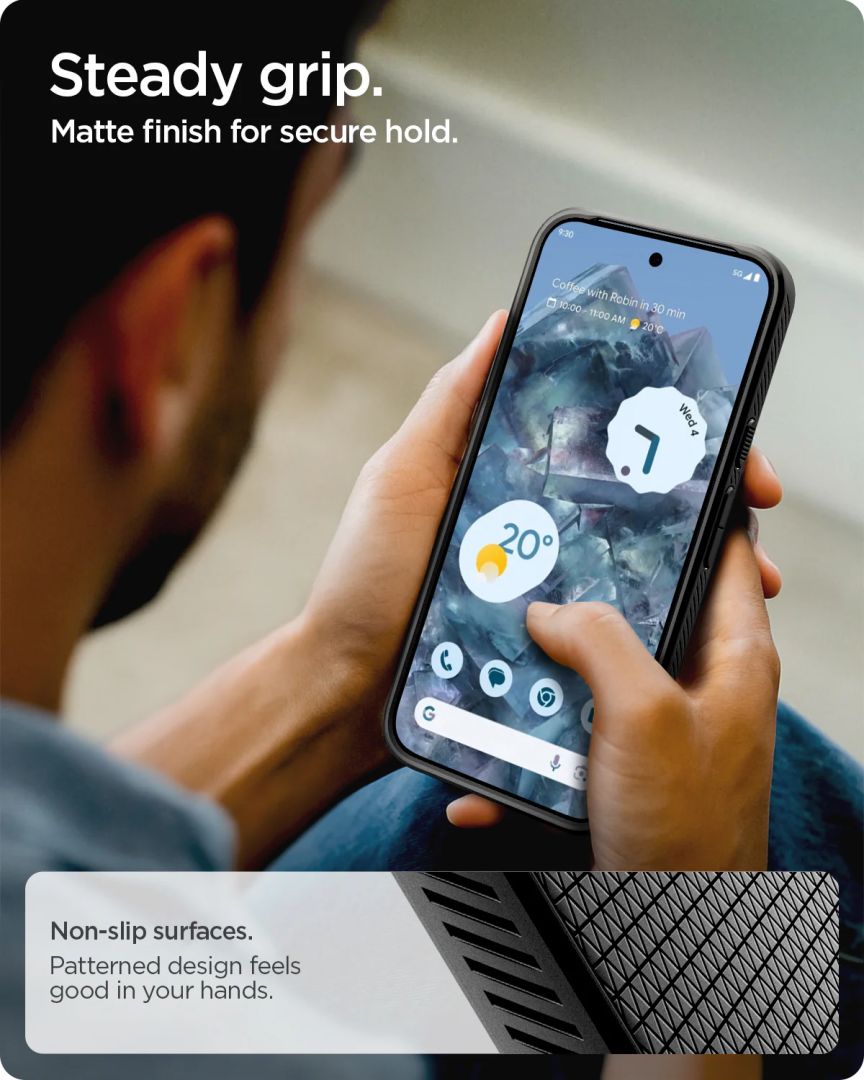 Sodródj az árral. A Liquid Air friss megjelenést kölcsönöz a Pixel 10 sorozatnak. Geometrikus kialakítása minden szögben védelmet és fogást biztosít. Mindig kényelmesen tarthatod készülékedet minden extra térfogat nélkül. Mostantól kompatibilis a Pixelsnappal, hogy új mágneses tartozékokat nyisson ki a Pixelhez.