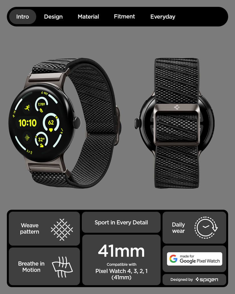A stílus és a teljesítmény érdekében készült Pixel Watch Lite Fit X szíj a tökéletes kiegészítője készülékednek. Egyedi, átlós mintázata modern stílust kölcsönöz, míg a nagy rugalmasságú nejlon tartós kényelmet biztosít egész nap.
