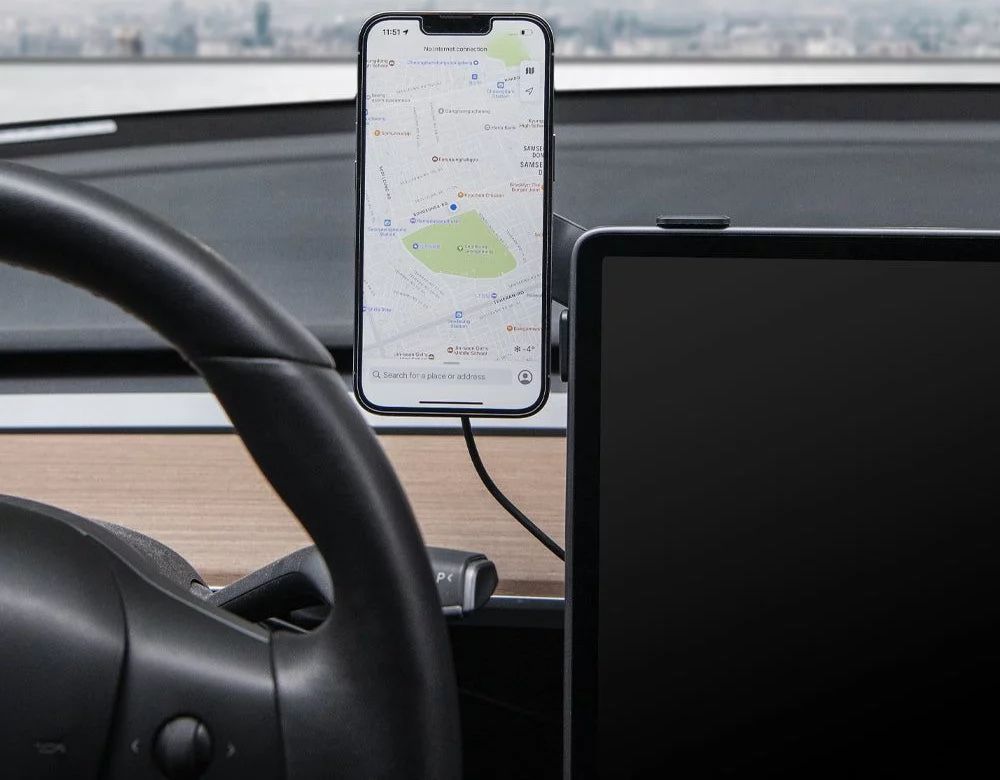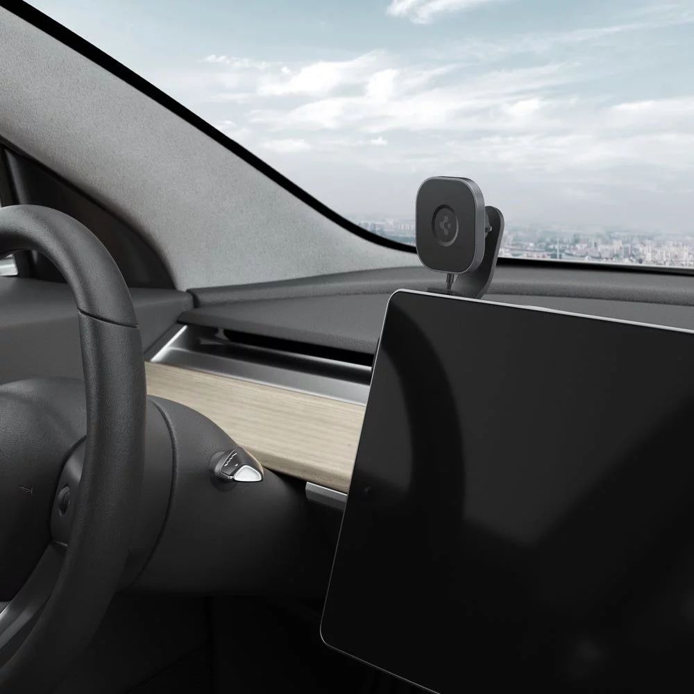 A Spigen ITT90W egy mágneses autós tartó vezeték nélküli töltéssel a Tesla járművek számára.
