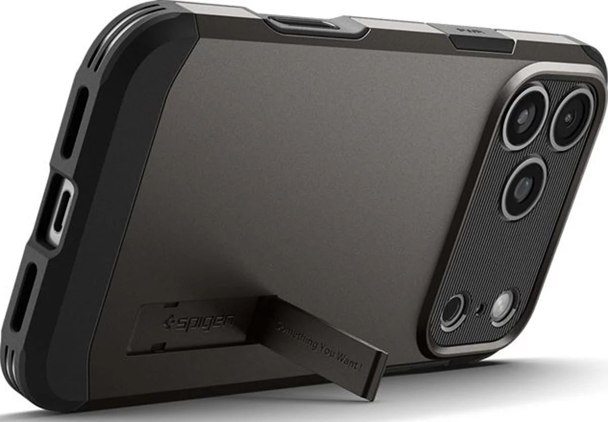 A Spigen Tough Armor T MagFit új ütésvédő habbal rendelkezik, amely fokozott védelmet nyújt az ütések és ütések ellen. A három különböző rétegből felépített tok optimális védelmet nyújt az Apple iPhone 17 Pro Max készüléknek vékony kialakításban. A beépített mágnes lehetővé teszi a MagSafe és Qi2 tartozékok mágneses rögzítését a tok hátoldalára. A kihajtható állványnak köszönhetően kihangosítható videohívásokat kezdeményezhetsz, vagy filmet vagy sorozatot nézhetsz.