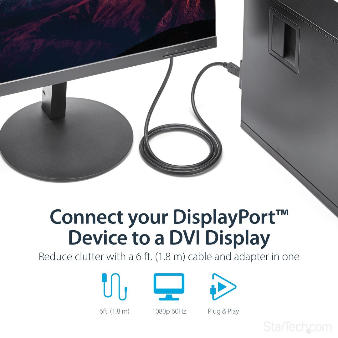 Videó kábel, DisplayPort, DVI, FullHD, Male/Male, 3m, Black