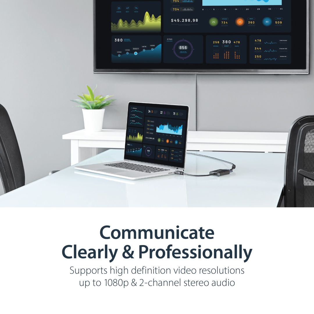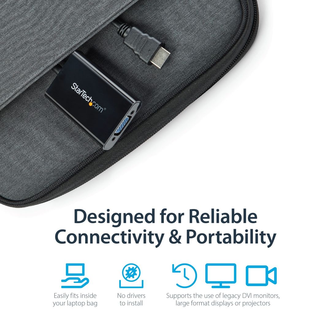 A HD2VGAA2 HDMI®-VGA adapterkábel lehetővé teszi egy HDMI kimeneti eszköz, például egy laptop videokimenete vagy digitális médiakiterjesztő csatlakoztatását egy VGA megjelenítő eszközhöz (monitor, projektor) azáltal, hogy a kimeneti eszköz HDMI videojelét VGA kimenetté és külön 2 csatornás analóg hanggá alakítja. A HDMI-VGA adaptert a felhasználó által létrehozott tartalmak, például prezentációk, dokumentumok és munkalapok VGA projektoron vagy monitoron történő megjelenítésére tervezték. Az adapter a számítógép asztali felületét is kibővítheti, hogy megduplázza a munkaterületet és növelje a termelékenységet.