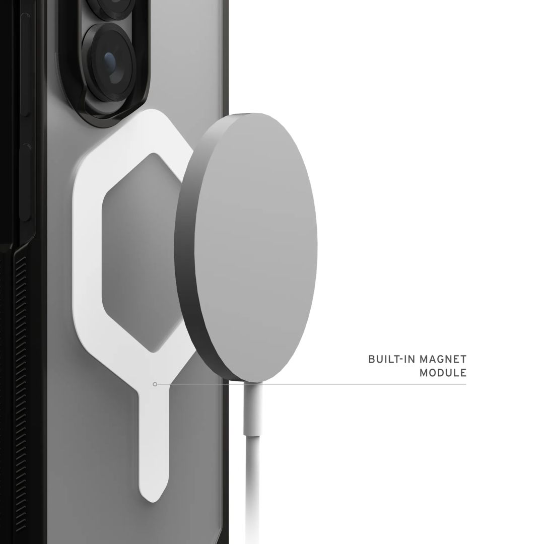 Mágneses modul: Beépített mágneses modul a PC-be ágyazva a további tartósság érdekében. Kompatibilis a MagSafe, a Qi és a legtöbb vezeték nélküli töltővel és mágneses kiegészítővel. Támogatja a Samsung Payt.
