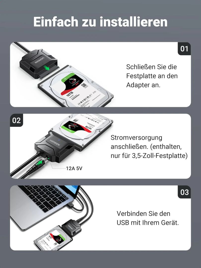 Adatátviteli adapter, Adapter Cable, USB-A, SATA, Male/Female, Black