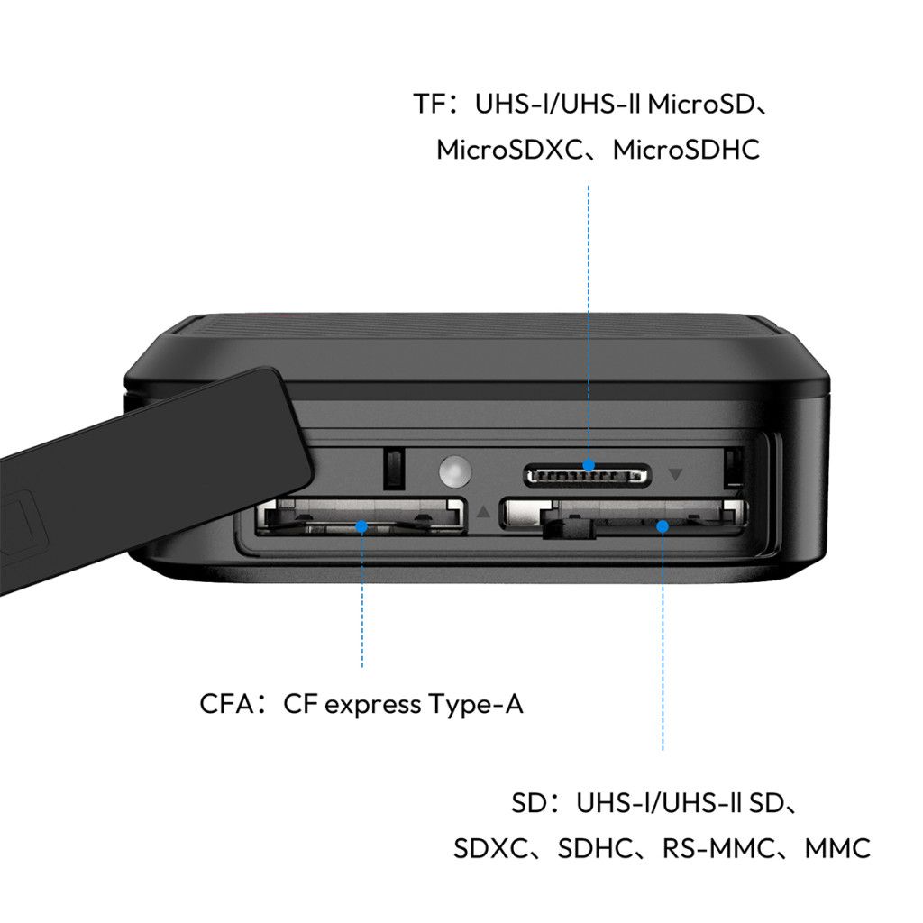 - 3 az 1-ben kártyaolvasó: CFexpress Type A, SD és microSD
