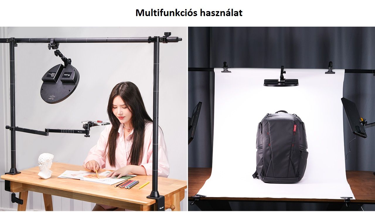 VIJIM Flexibilis és állítható LS15 asztali fotós studió állvány set. Két oldalú oldalsó tartókarral rendelkező teljes asztali állvány kit VIJIM LS sorozathoz. Helyezd profi DSLR kamerádat, LED fényforrásokat, mikrofonodat vagy akár telefonodat az asztallapra vagy akár egyéb lapos felületekre (ajtó, szekrény) szélére profi minőségű otthoni videó, vlog vagy steaming készítéséhez.