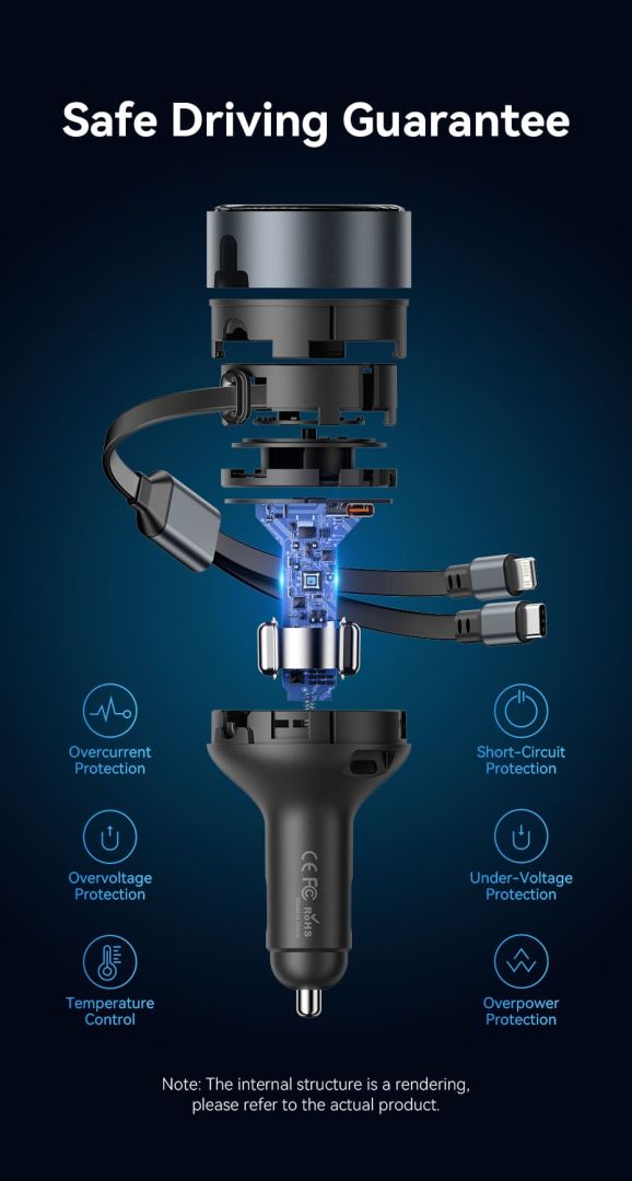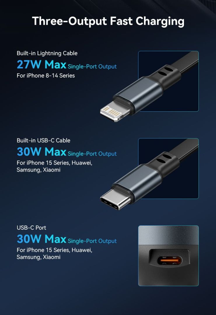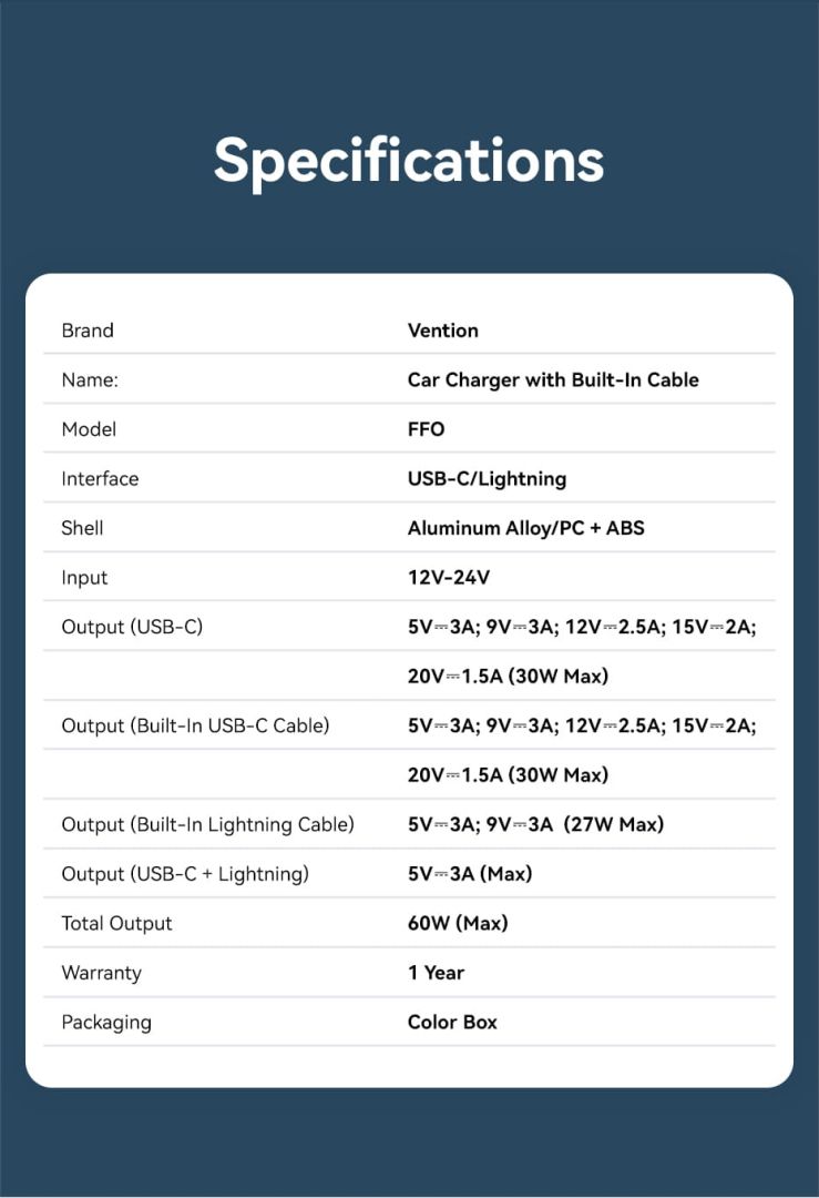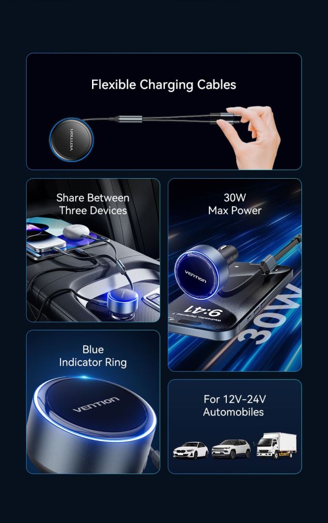 Autós töltő, 1xUSB-A, Kábel csatlakozó USB-C/Lightning, 5V/9V/12V/15V/20V, 3A, 30W, PD, Black
