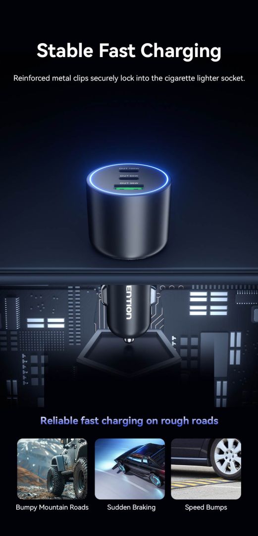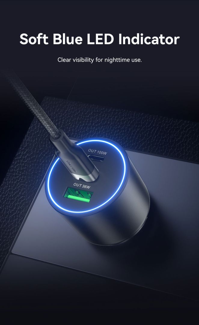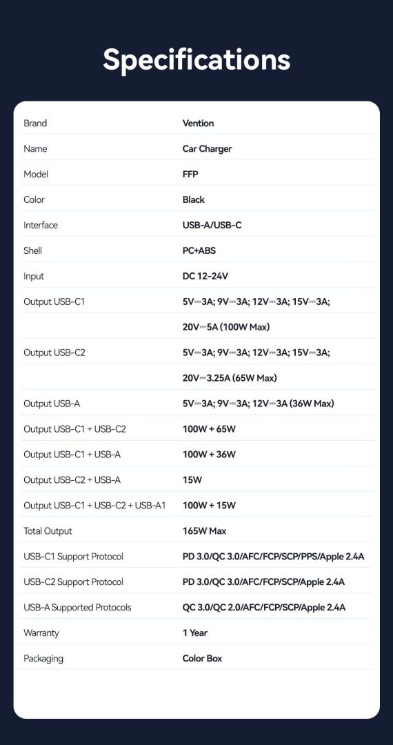 Autós töltő, 1xUSB-A, 2xUSB-C, 5V/9V/12V/15V/20V, 5A, 165W, QC, Black