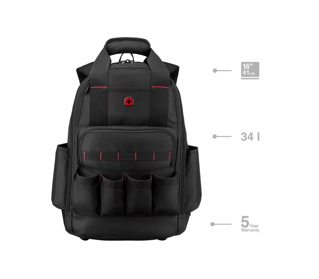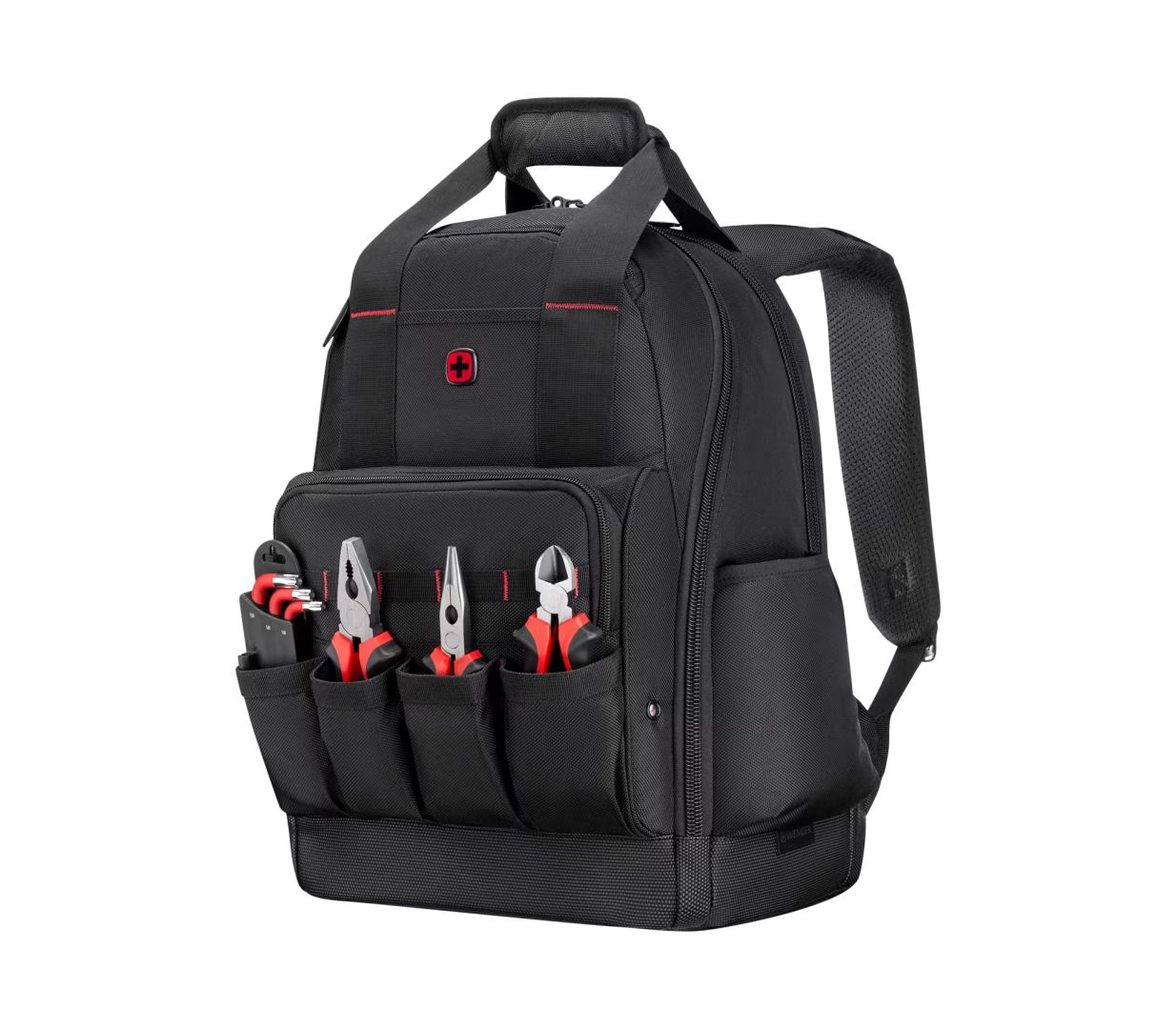 Fedezze fel a Tool Backpack Advanced, egy robusztus és praktikus szerszámosládát hátizsák formájában. A szerelők, technikusok és építkezési munkások számára tervezett hátizsák különböző zsebekkel rendelkezik, amelyekben kéziszerszámok, szögek, kalapácsok, csavarhúzók és egyéb eszközök tárolhatók. A robusztus fő külső anyag újrahasznosított PET-palackokból készült, így tartós választás. A funkciók közé tartozik egy párnázott rekesz akár egy 16"-os laptop számára, egy tágas főrekesz, egy kiterjedt szerszámszervező és egy szemüvegrekesz. A főrekesz zárható cipzárjai biztosítják, hogy szerszámai biztonságban maradjanak. A hátizsák emellett légáramoltató hátpárnázással, kényelmesen illeszkedő vállpántokkal, nagyméretű, megerősített fogantyúkkal a könnyű hordozás érdekében, valamint könnyen tisztítható aljjal büszkélkedhet.